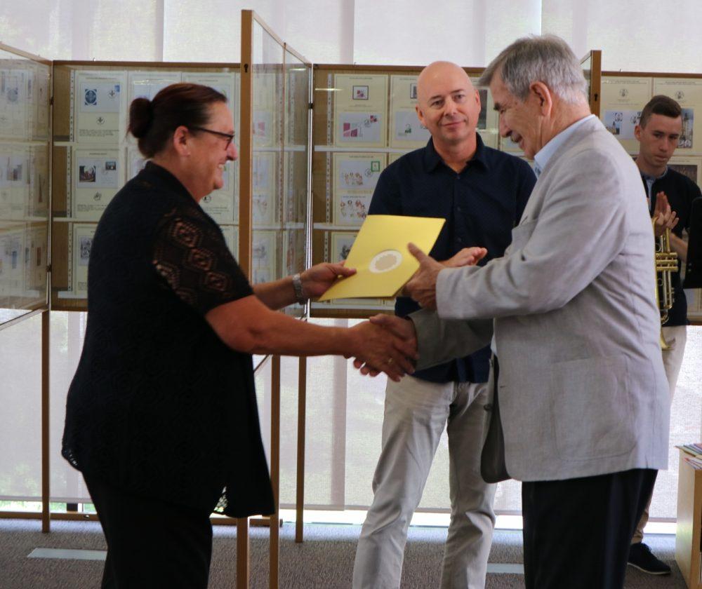 Odprtje razstave je spremljal kratek kulturni program, ki ga je popestril Gašper Keber na trobenti. Podeljena so bila priznanja Javnega sklada Republike Slovenije za kulturne dejavnosti katere je v nadaljevanju prireditve podelila Jožica Pušnik, vodja Območne izpostave Ravne. Koroško filatelistično društvo se je ob tej priložnosti zahvalilo posameznikom, ki so društvo vodili v preteklosti. Zahvale so prejeli bivši, še živeči predsedniki društva: Filip Merkač, Miro Kostanjevec, Drago Brodnik, Peter Močnik in Marijan Berčič. Član društva Marjan Merkač pa je prejel zahvalo za življenjsko delo.