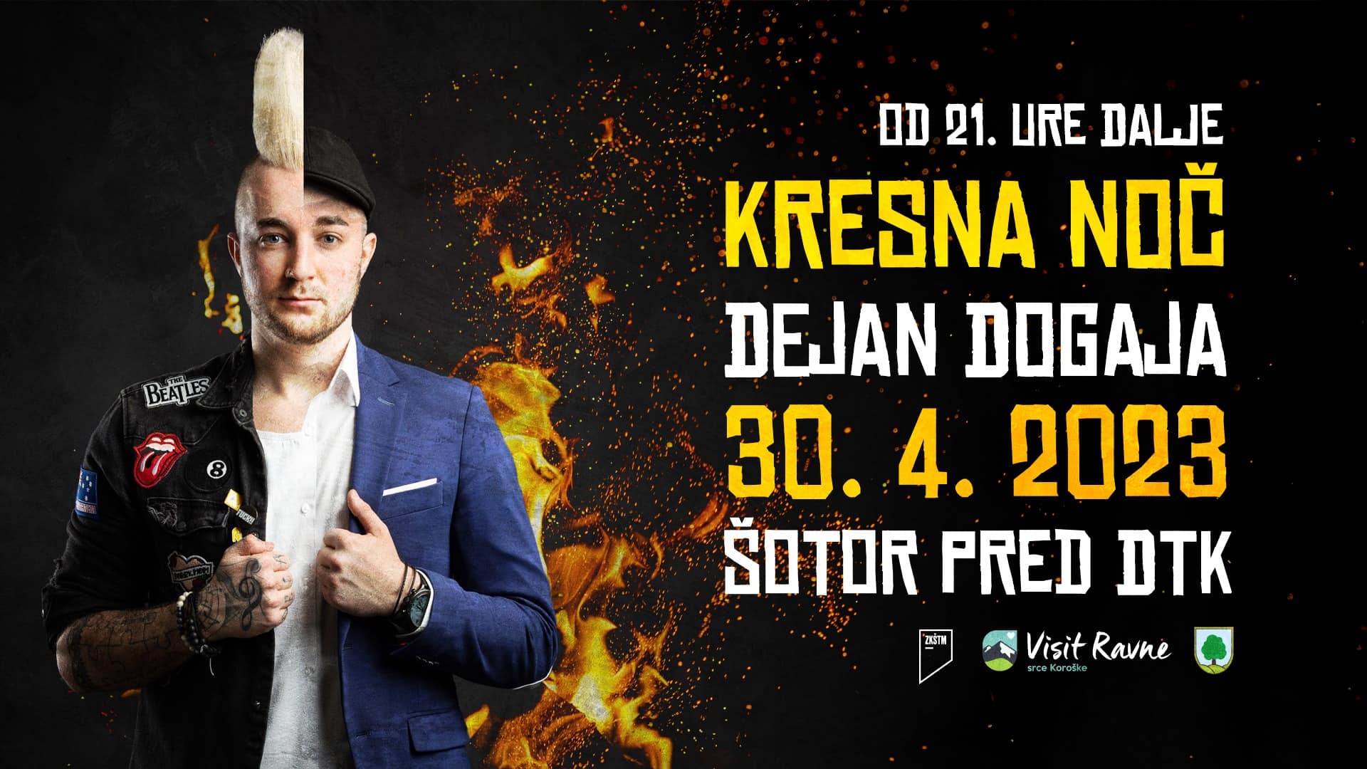 V nedeljo, 30. aprila, od 21. ure dalje vas na Ravnah čaka zabava kot je še ni bilo. Na kresno noč prihaja v goste odlični Dejan Dogaja. Dogodek bo potekal pod velikim šotoru na DTK.