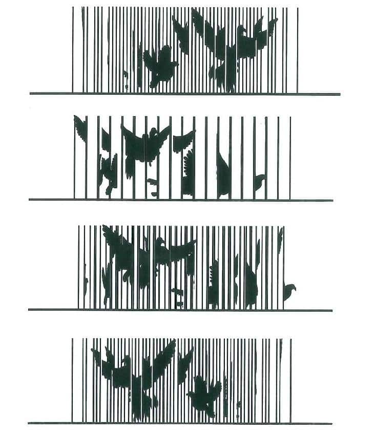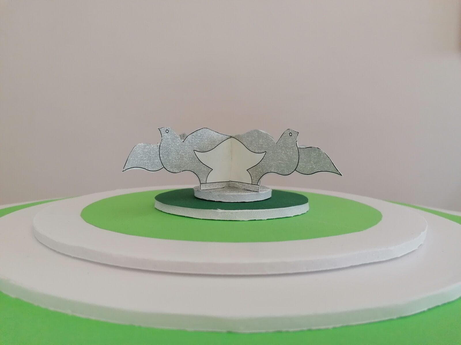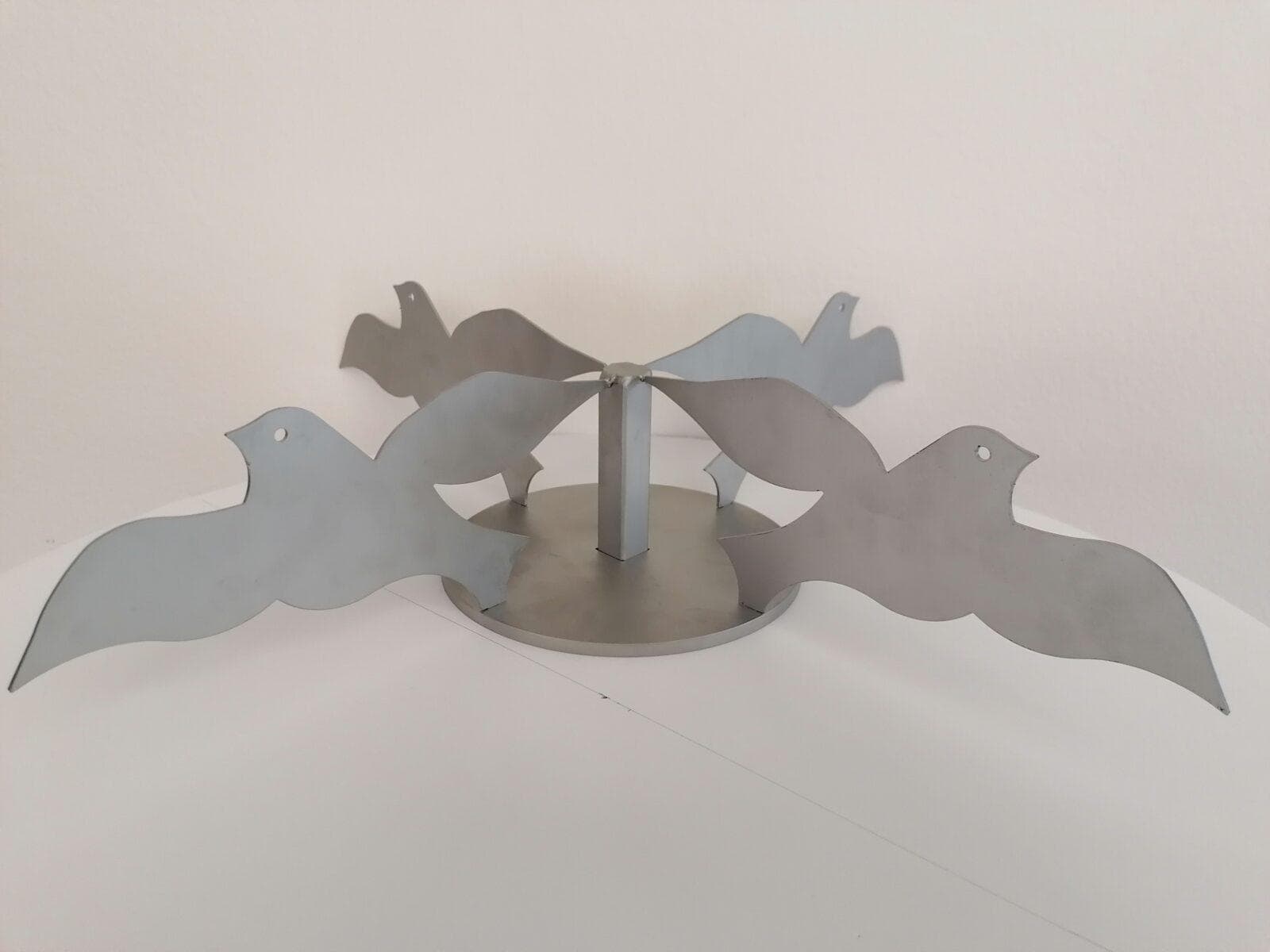 Zmagovalna rešitev je dinamična abstrakcija ptic, ki bo mimo vozečim dajala občutek, da se skulptura spreminja in giba. Za silhuete ptic je uporabljen motiv goloba v različnih položajih. Pod določenim zornim kotom se ptice, katerih kosi so razdeljeni in zavarjeni na kovinske palice, zložijo tako, da vidimo celotno figuro, ki pa se s premikom razblini (odleti). Poleg inovativne skulpture si je avtorica zamislila tudi polkrožno zasaditev okrasnih trav v kombinaciji s trato. V predlog ureditve je vključen tudi napis, ki bo izražal dobrodošlico vsem, ki se bodo v Slovenj Gradec pripeljali iz dravograjske smeri.