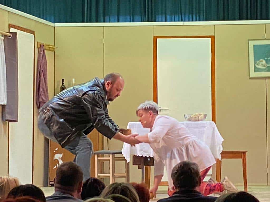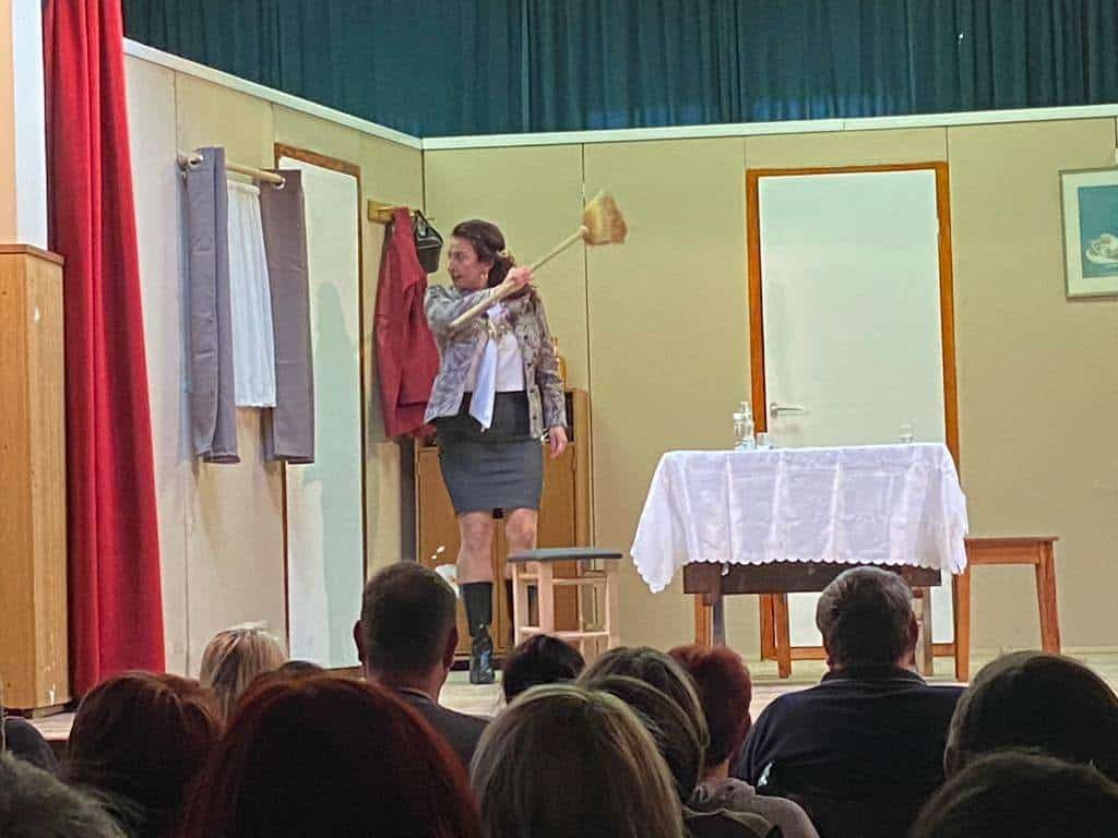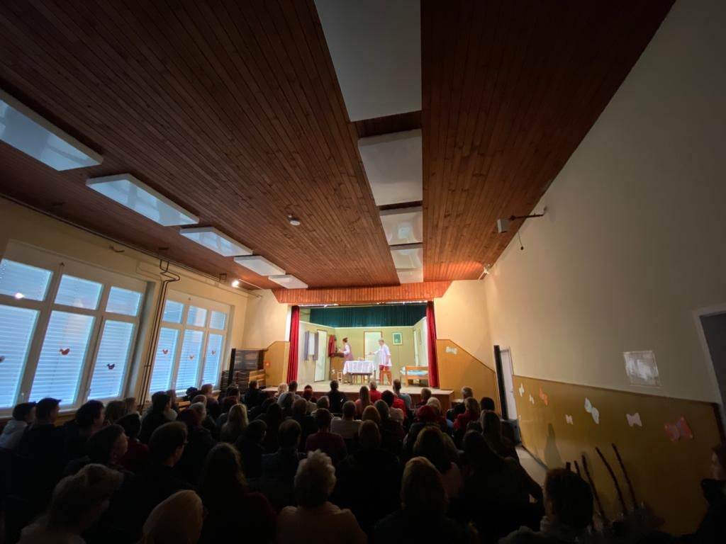 Domača dvorana OŠ Šmiklavž je bila polna obiskovalcev in nihče ni ostal ravnodušen, saj je igra polna komičnih zapletov.