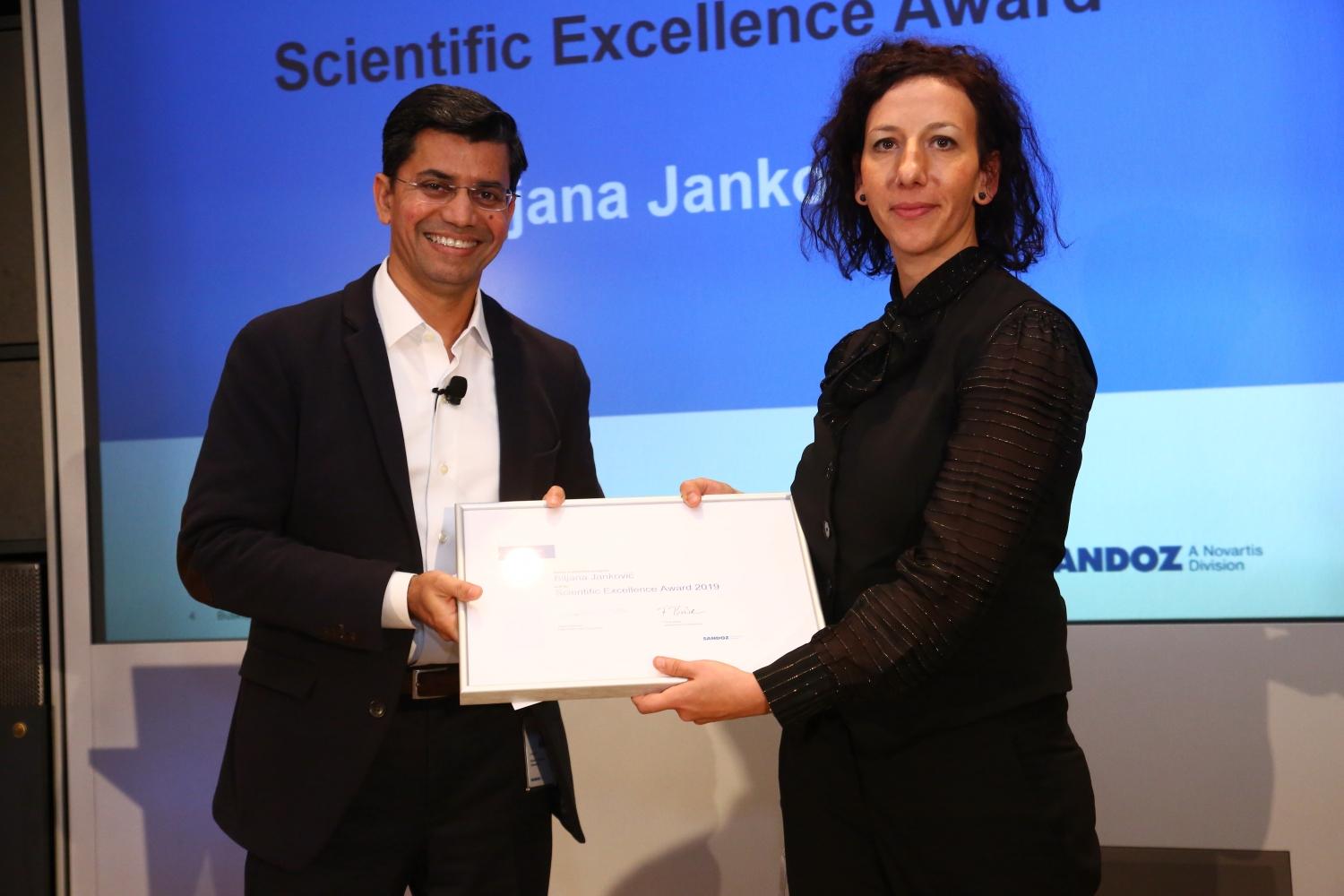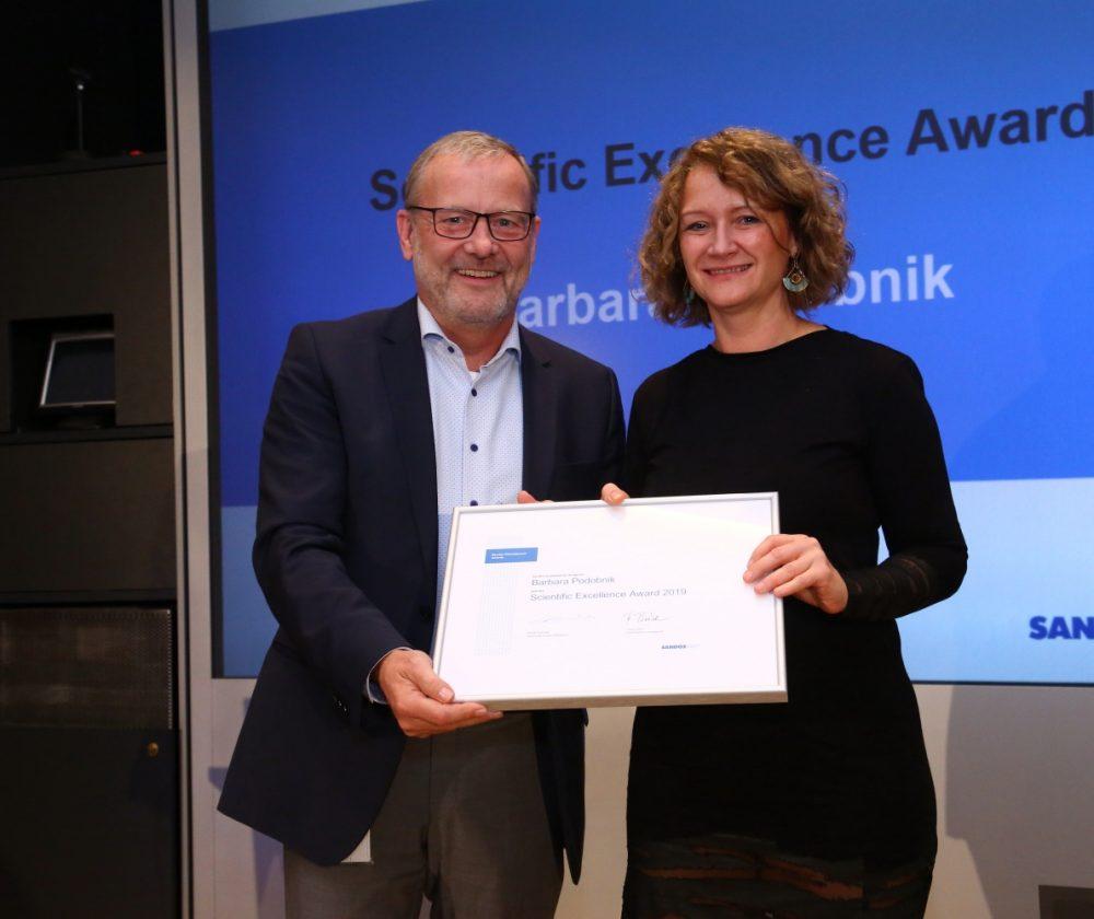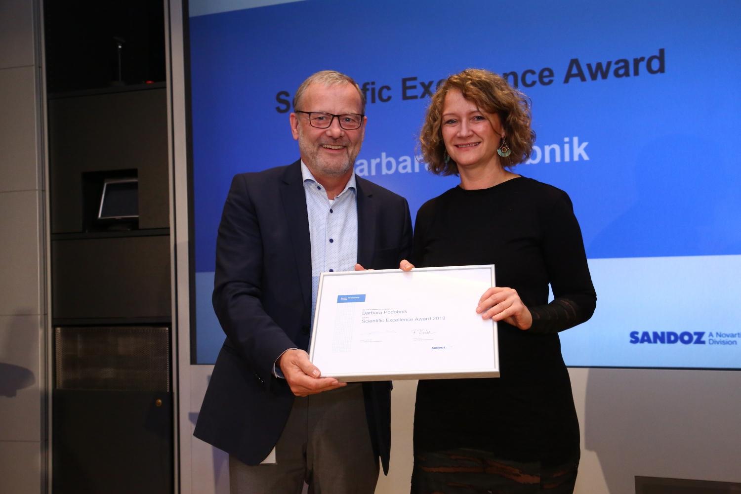 Z nagrado za znanstveno odličnost Sandoz vsako leto prepozna najboljše znanstvenike z večletnimi izjemnimi dosežki v raziskavah in razvoju. Letos sta prejemnici obeh nagrad Slovenki, dr. Barbara Podobnik iz Razvoja bioloških zdravil Mengeš in dr. Biljana Janković iz Razvojnega centra Slovenije.