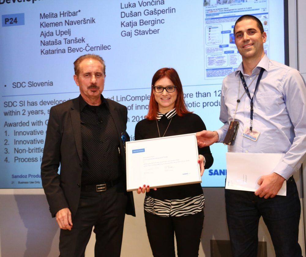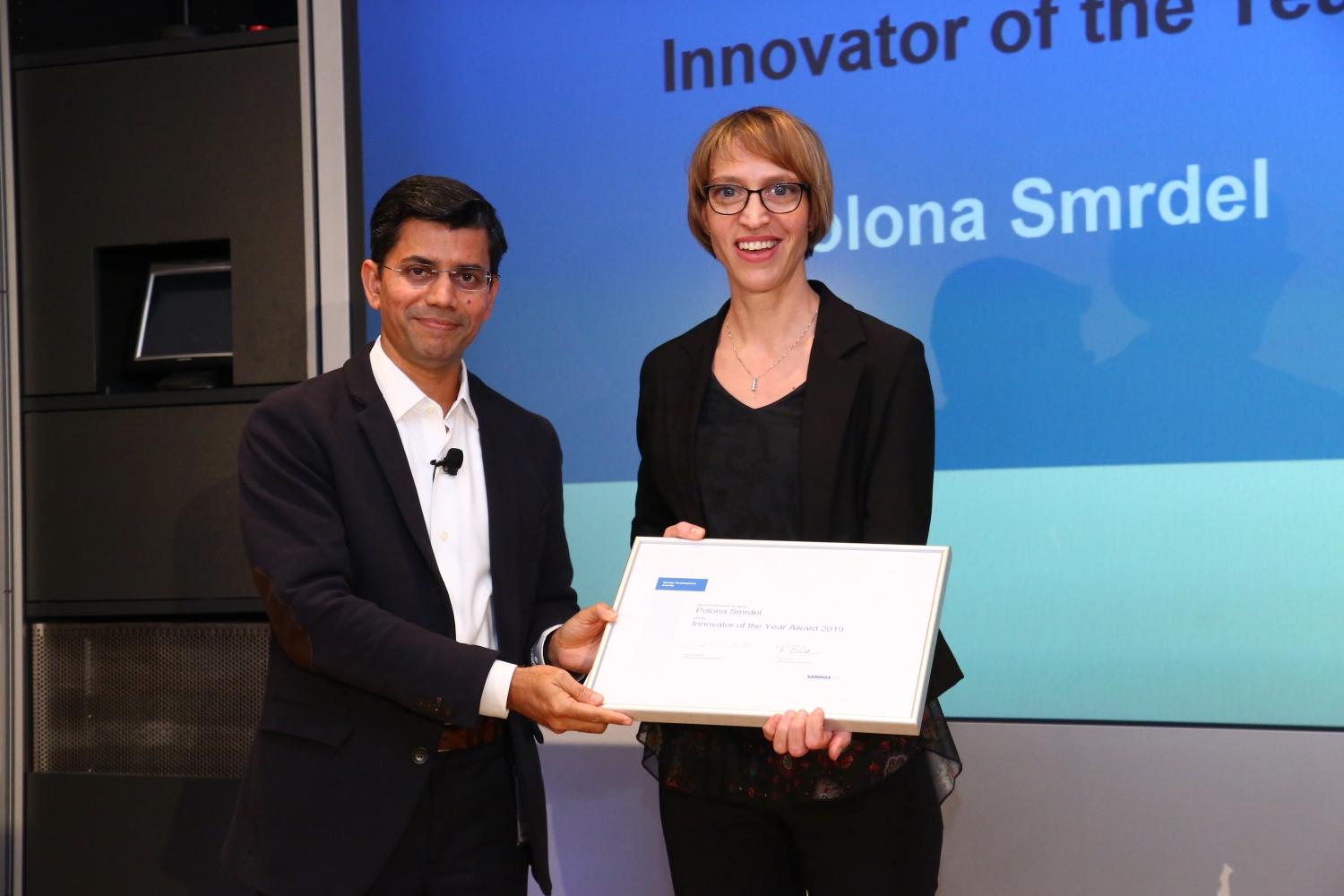 Nagrado Inovator leta je za svoj izjemen prispevek k celotni razvojni skupnosti Sandoza prejela dr. Polona Smrdel iz Razvojnega centra Slovenija, novinka leta pa je postala Kaja Gantar, prav tako sodelavka Razvojnega centra Slovenije, ki se je ekipi pridružila z ljubljanske Fakultete za farmacijo.