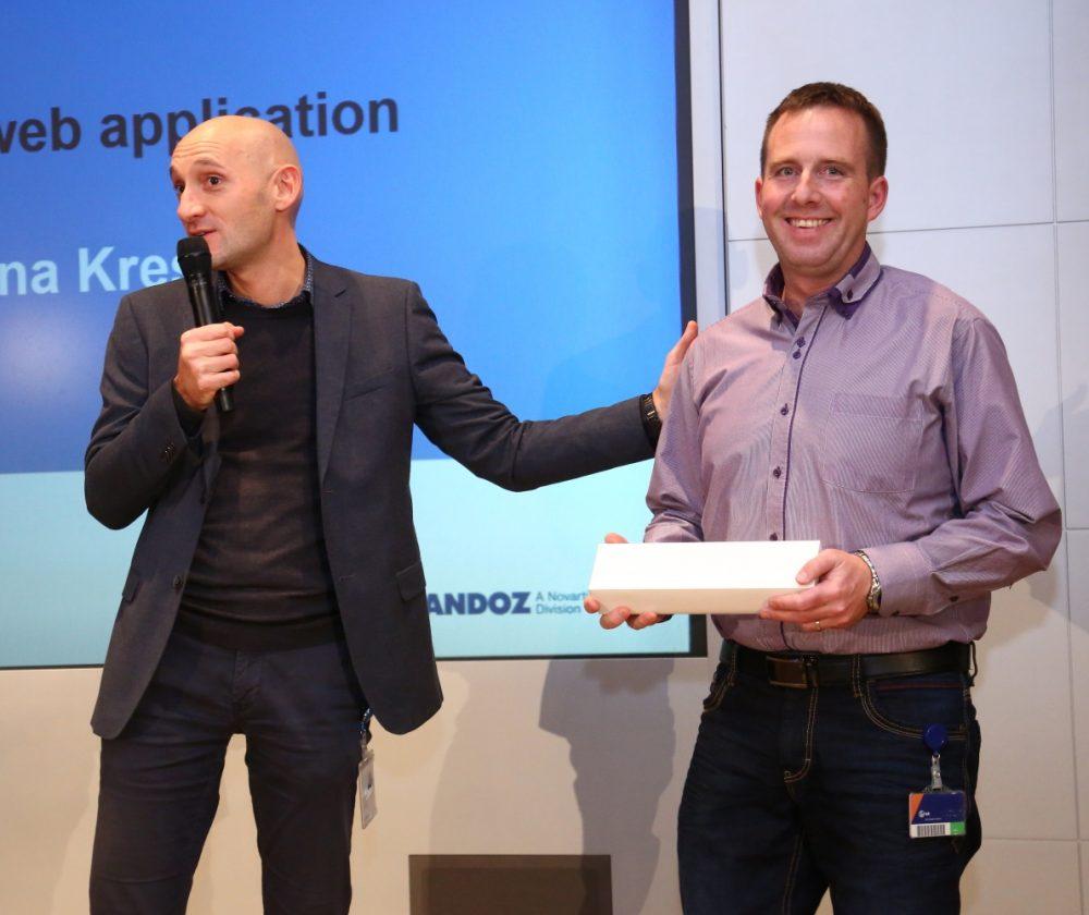 Sandozovo nagrado za inovacije na področju prihranka časa je v imenu Ane Krese sprejel Boštjan Petek