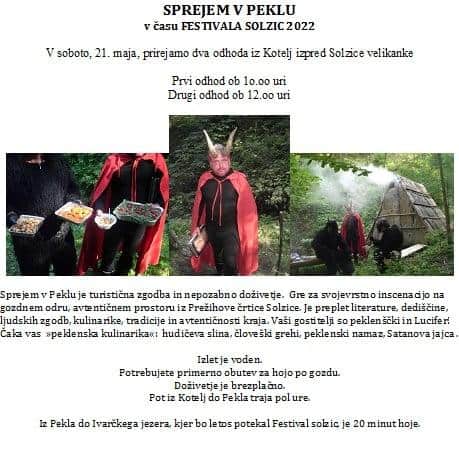 Sprejem v Peklu; ob 10.oo in 12.oo uri je odhod iz Kotelj, zbirališče pri Solzici velikanki.