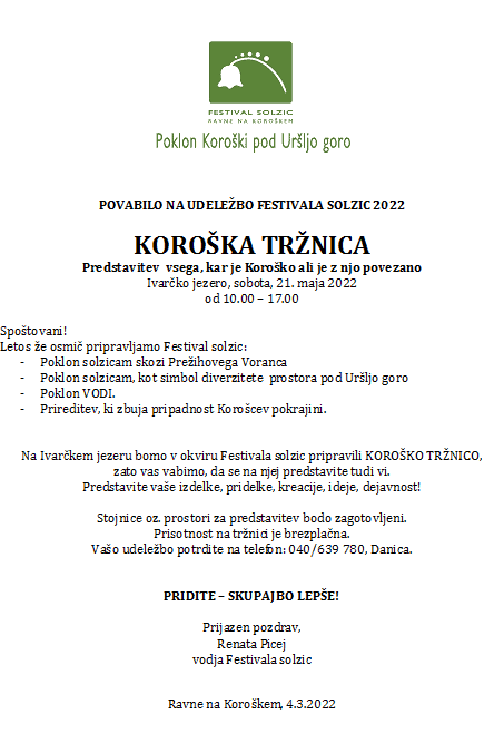 "Festival solzic je hommage Koroški pod Uršljo goro. Je poklon njeni dediščini! Najprej iz naslova literature, kjer je v ospredju Prežihov Voranc s svojo črtico Solzice, ki so prinesle tudi ime prireditve, in drugič iz naslova narave, kulture, tradicije, ljudskih zgodb ter človeka. Je praznik tega, kar imamo in kar smo. Smo Koroška in smo Slovenija," so v vabilu navedli organizatorji dogodka, Občina Ravne na Koroškem in TD Solzice.