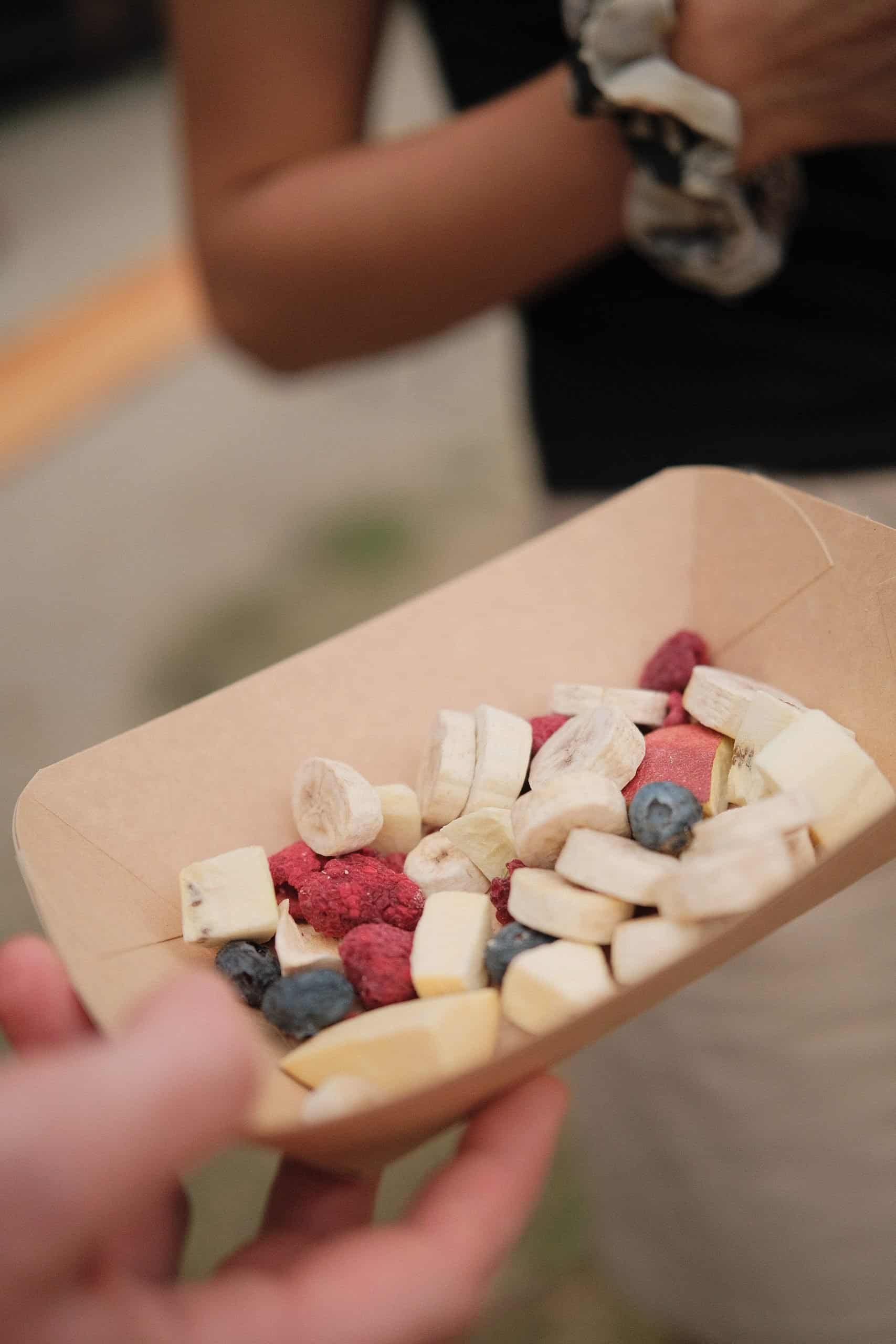 Liofilizirano sadje je lahko odlično tudi za pohodništvo, saj je lahko (ker ne vsebuje vode) in ko ga zaužijemo, hitro povrne energijo. Liofilizirano sadje je trenutno na voljo v dveh planinskih kočah – v Domu na Uršlji gori in Domu planincev v Logarski dolini.