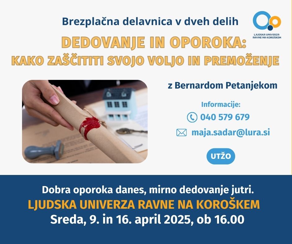 - Kako pravilno sestaviti oporoko, kje jo hraniti in kako jo spreminjati ali preklicati.