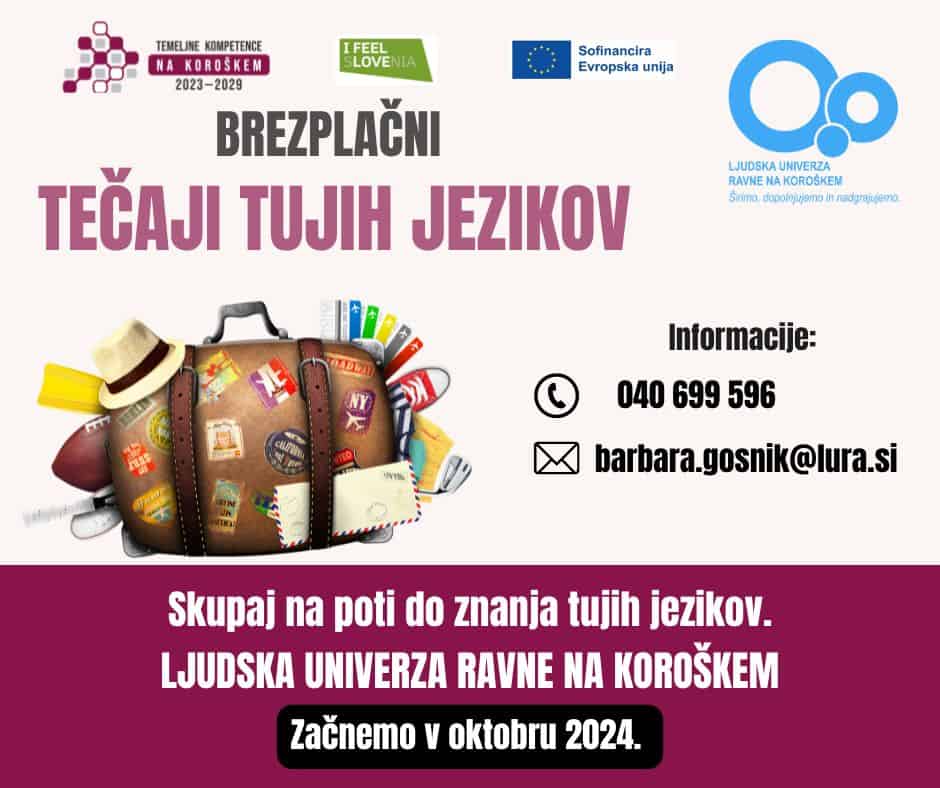 Zato vas Ljudska univerza Ravne na Koroškem vabi k vpisu na brezplačne tečaje tujih jezikov za odrasle, ki jih izvajajo v sklopu projekta Temeljne kompetence na Koroškem (2023–2029).