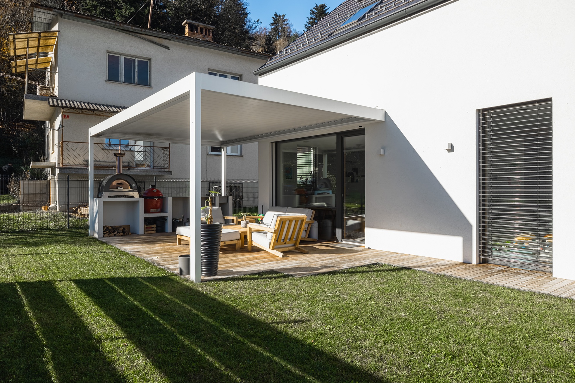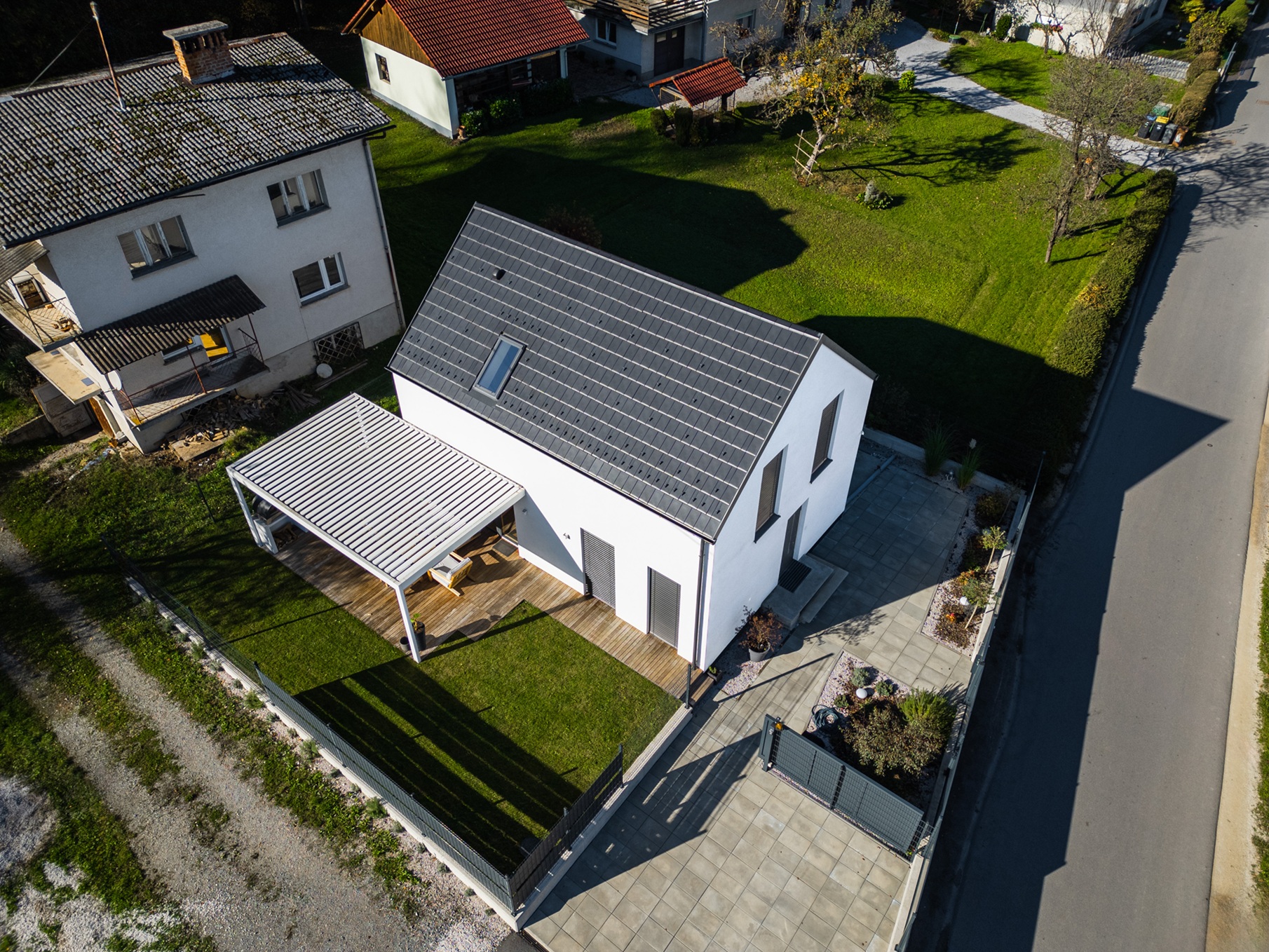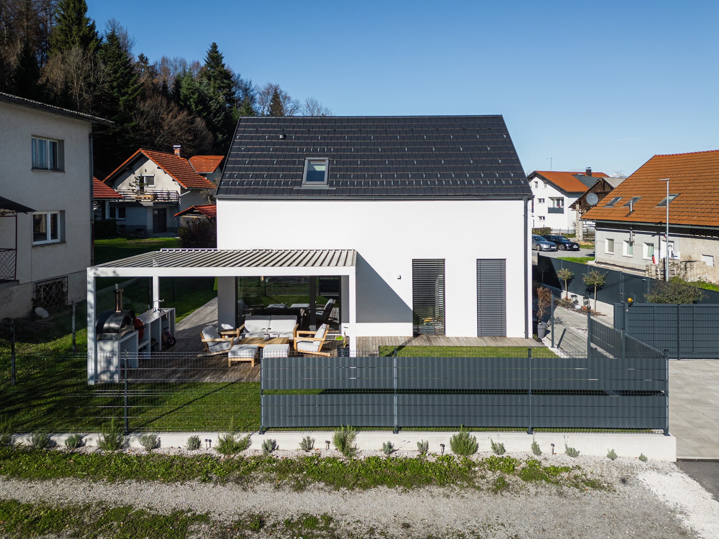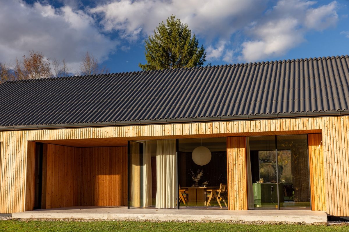 - Voden ogled hiše individualne pritlične hiše Lumar – zasnovo in individualno prilagajanje so izvedli v Lumarjevem arhitekturnem biroju.