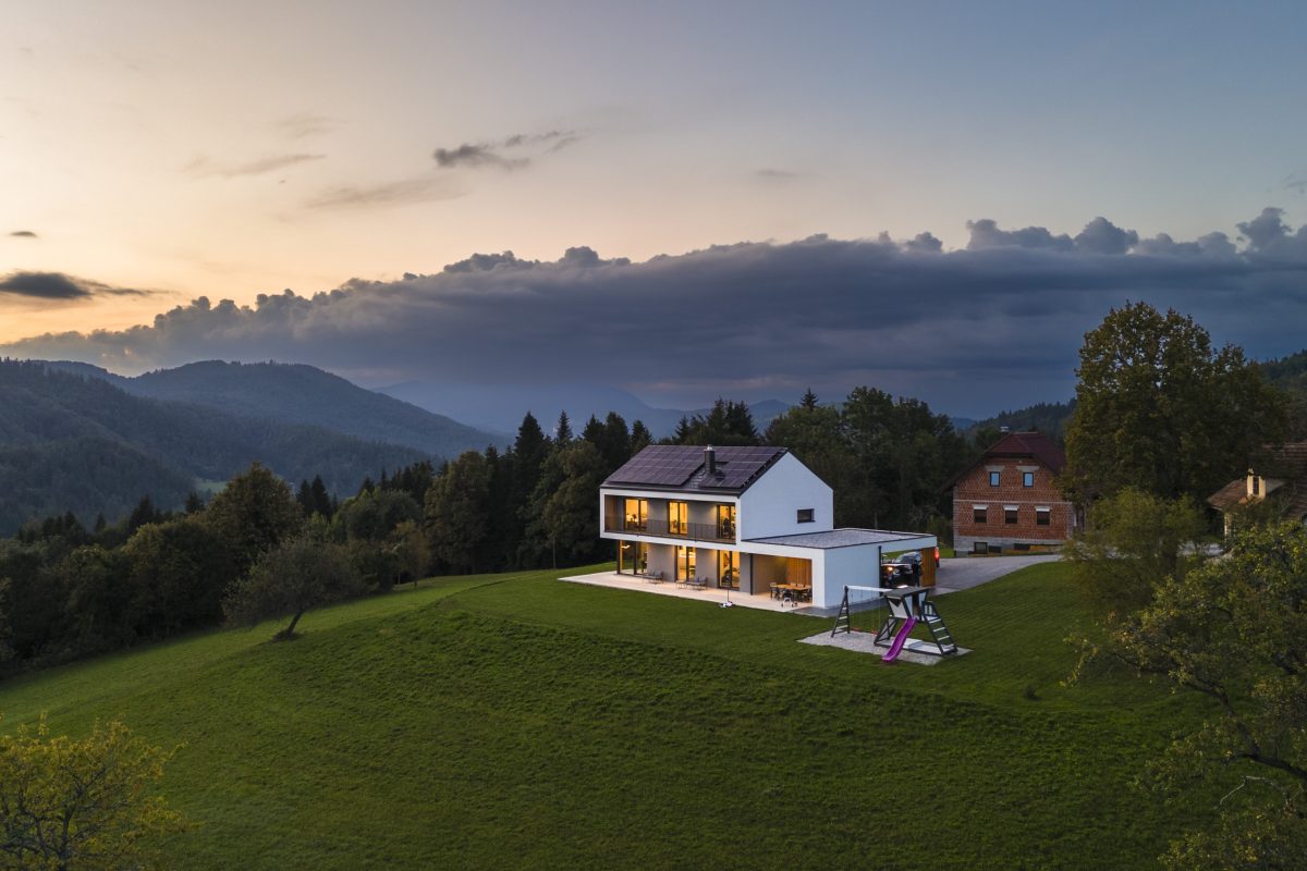 - Izjemna energetska učinkovitost in samooskrba – skoraj nič-energijska hiša s porabo pod 10 kWh/ m²a (pasivna hiša) s sončno elektrarno, toplotno črpalko in rekuperacijo zraka zagotavlja minimalne stroške skozi celoten življenjski cikel in prijetno klimo v vseh letnih časih.