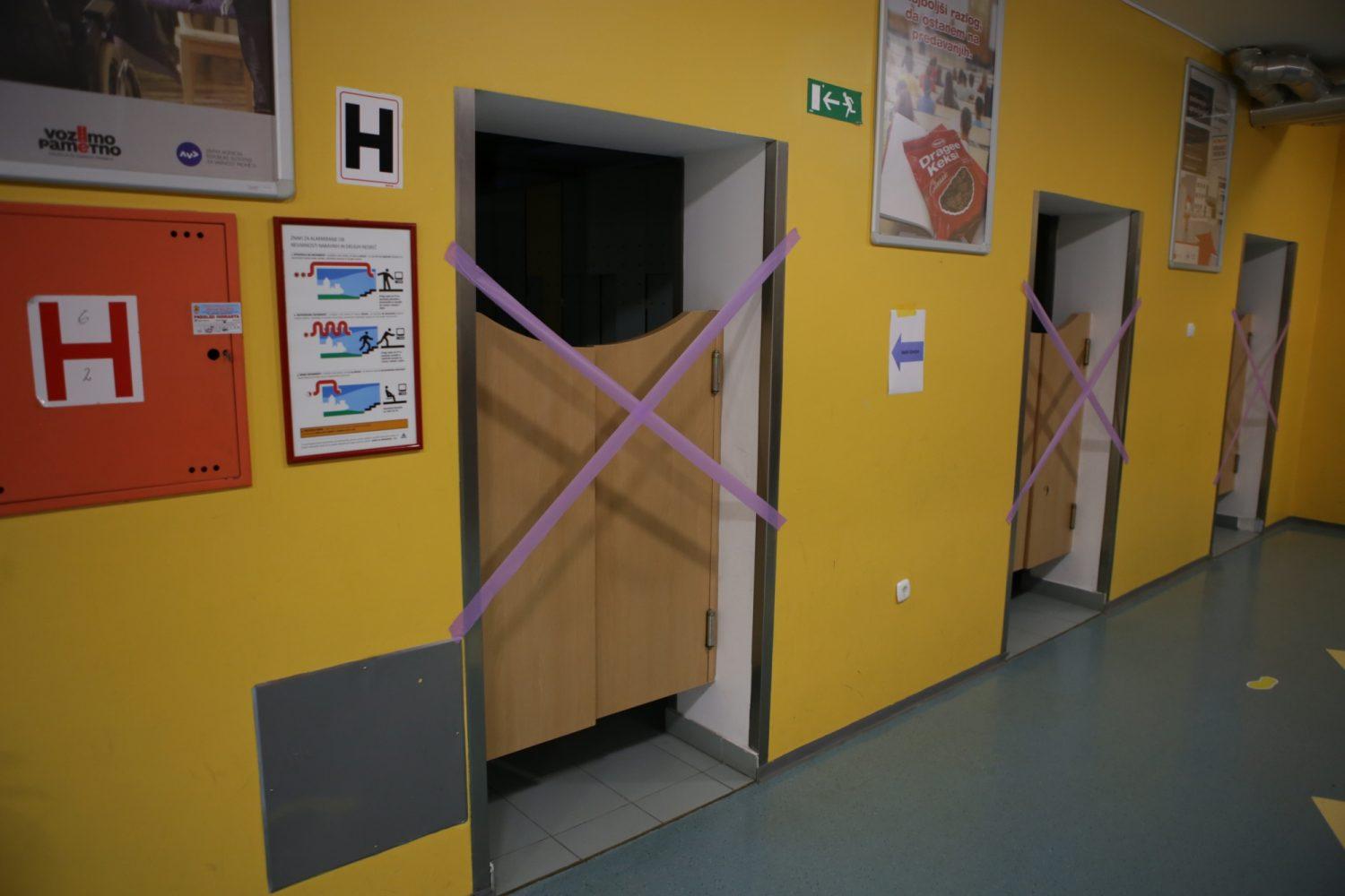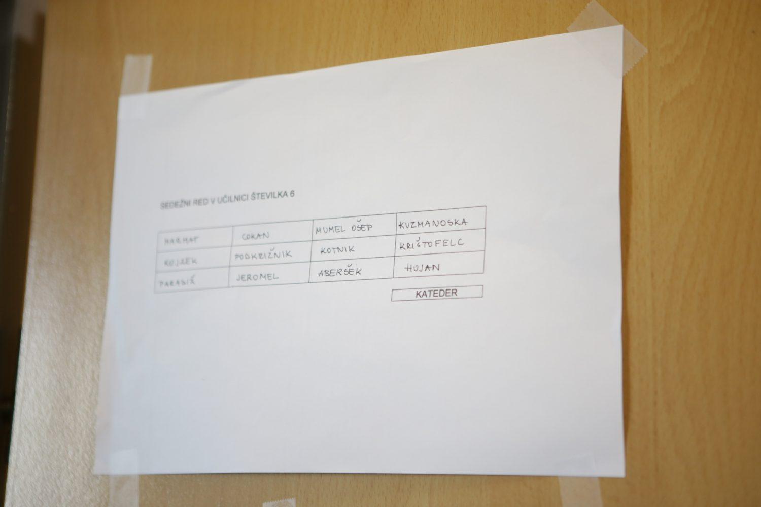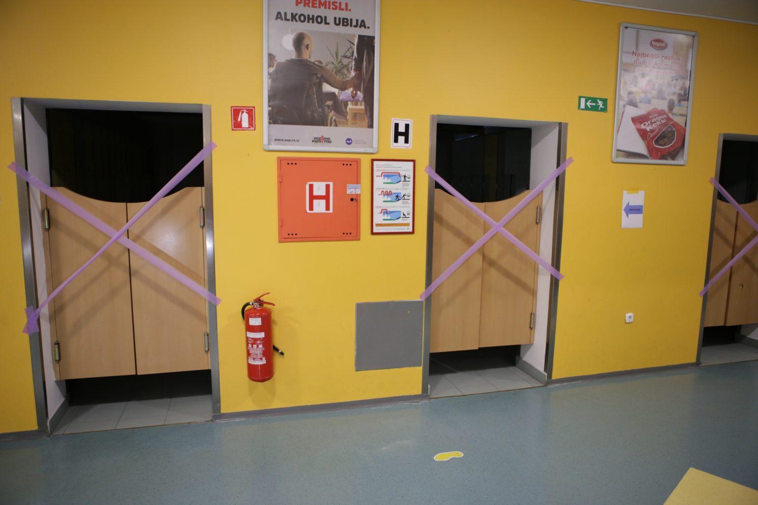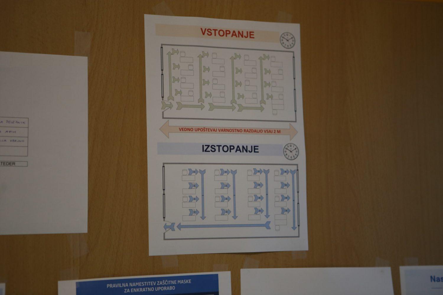 Na šoli je s puščicami posebej označena smer gibanja, po kateri lahko dijaki pridejo do sanitarij. Garderobe so zaprte, pripravljena imajo razkužila. V učilnicah sedi po dvanajst dijakov, določen je tudi sedežni red, učilnice pa razkužujejo in sproti tudi zračijo.