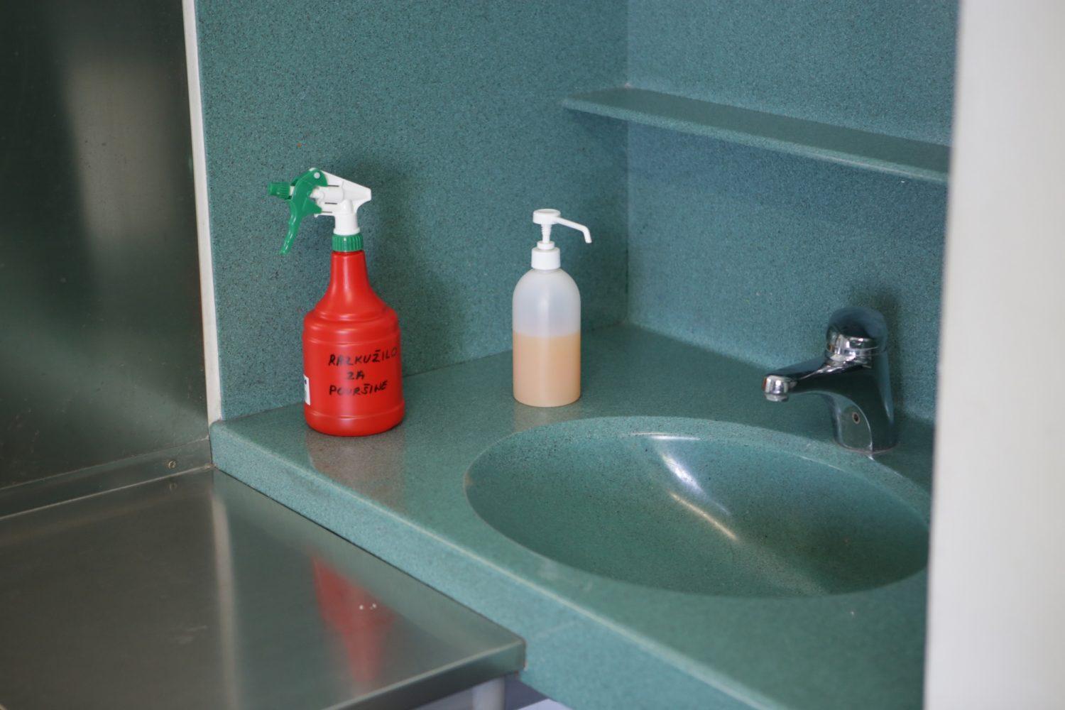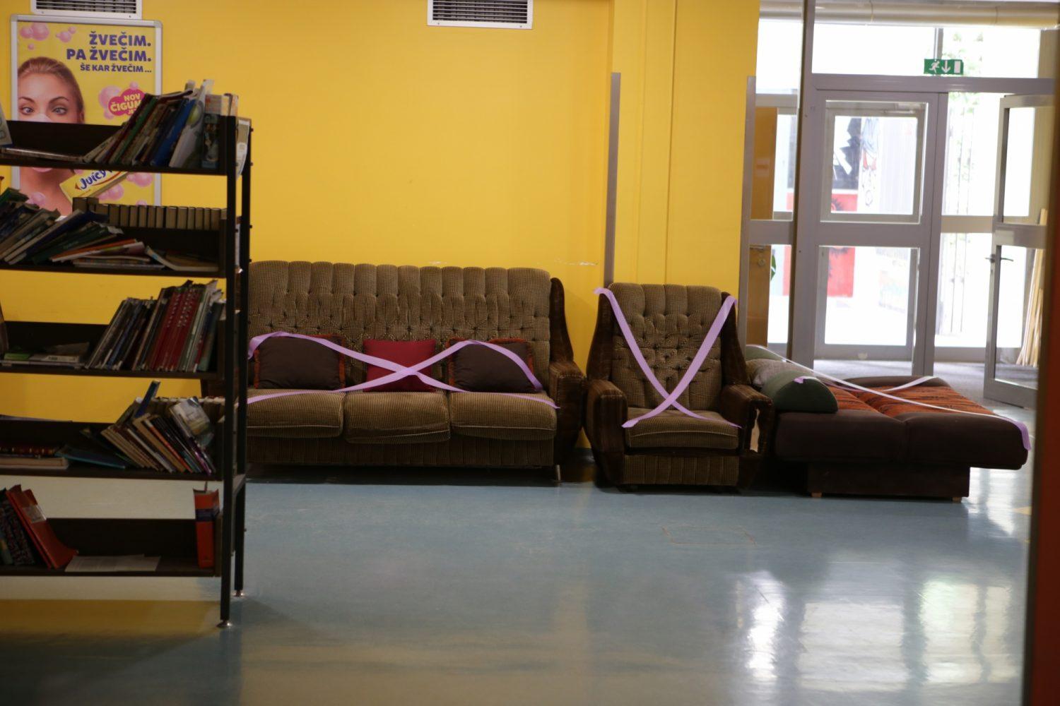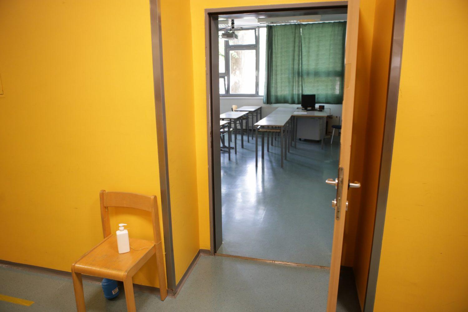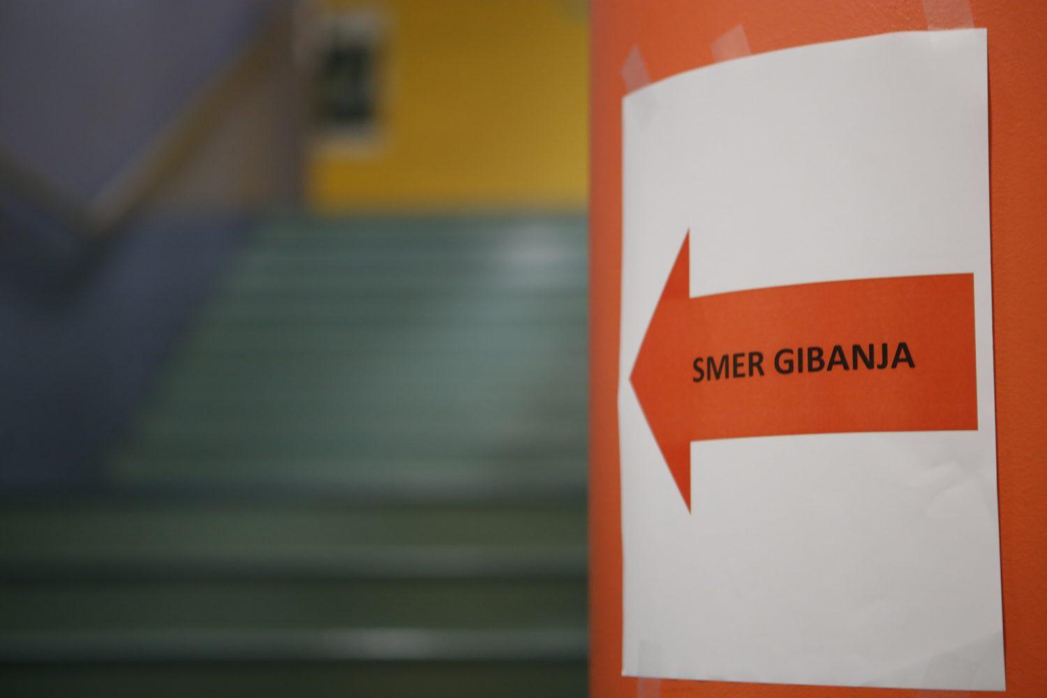 Na šoli je s puščicami posebej označena smer gibanja, po kateri lahko dijaki pridejo do sanitarij. Garderobe so zaprte, pripravljena imajo razkužila. V učilnicah sedi po dvanajst dijakov, določen je tudi sedežni red, učilnice pa razkužujejo in sproti tudi zračijo.