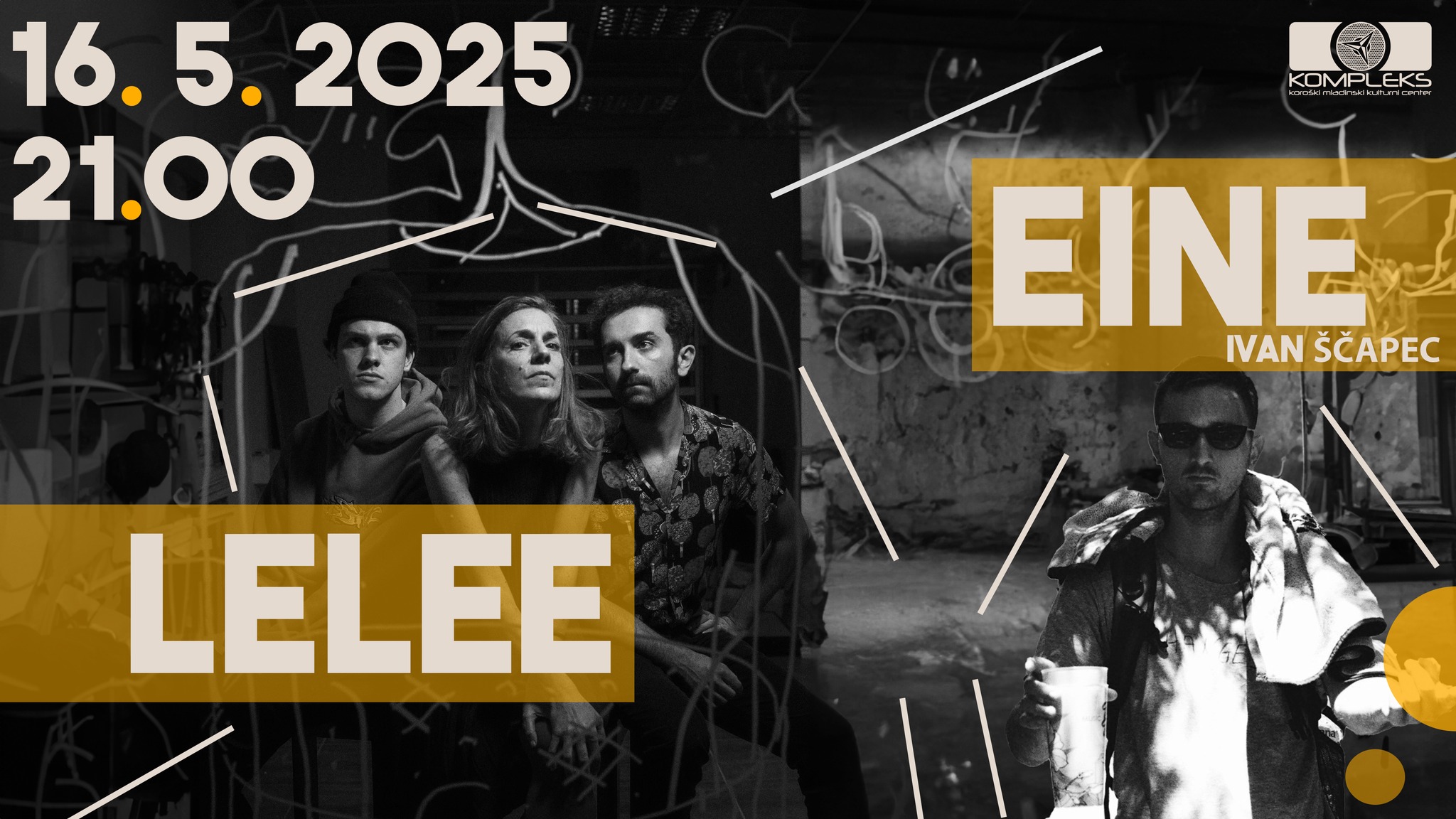 Že naslednji vikend nas čaka prava poslastica, v Kompleksu se bo v petek, 16. maja 2025 širil indie vibe ob edinstvenih zvokih transbalkanskega tria Lelee, na odru pa nas bo navdušil tudi EINE - Ivan Ščapec.