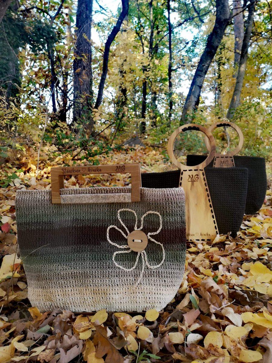 "Torbica je ročno delo ustvarjalke in mojstrice v kvačkanju" razložita in dodata, da se je sodelovanje s Stanko začelo čisto po naključju, ju je našla in kontaktirala za masivne ročaje. Prosila je za izdelavo, saj v njeni okolici znancu to delo nekako ni dišalo. "Seveda sva izdelala željene ročaje… En, dva tri, štiri komplete . No, potem pa je padla ideja, za naju izdela eno torbico. Tako je nastala najina prva kvačkana torbica z ročaji iz orehovega lesa."