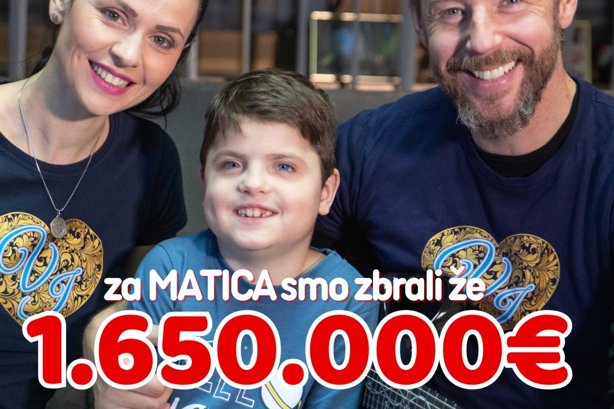 Že 1.650.000 € je Slovenija zbrala za dečka Matica, ki se bori z Duchennovo mišično distrofijo. Do končnega cilja, ki je 2,2 milijona €, ki bo dečku omogočil, da bo lahko prejel revolucionarno gensko zdravljenje Elevidys, ga loči še zadnja četrtina.