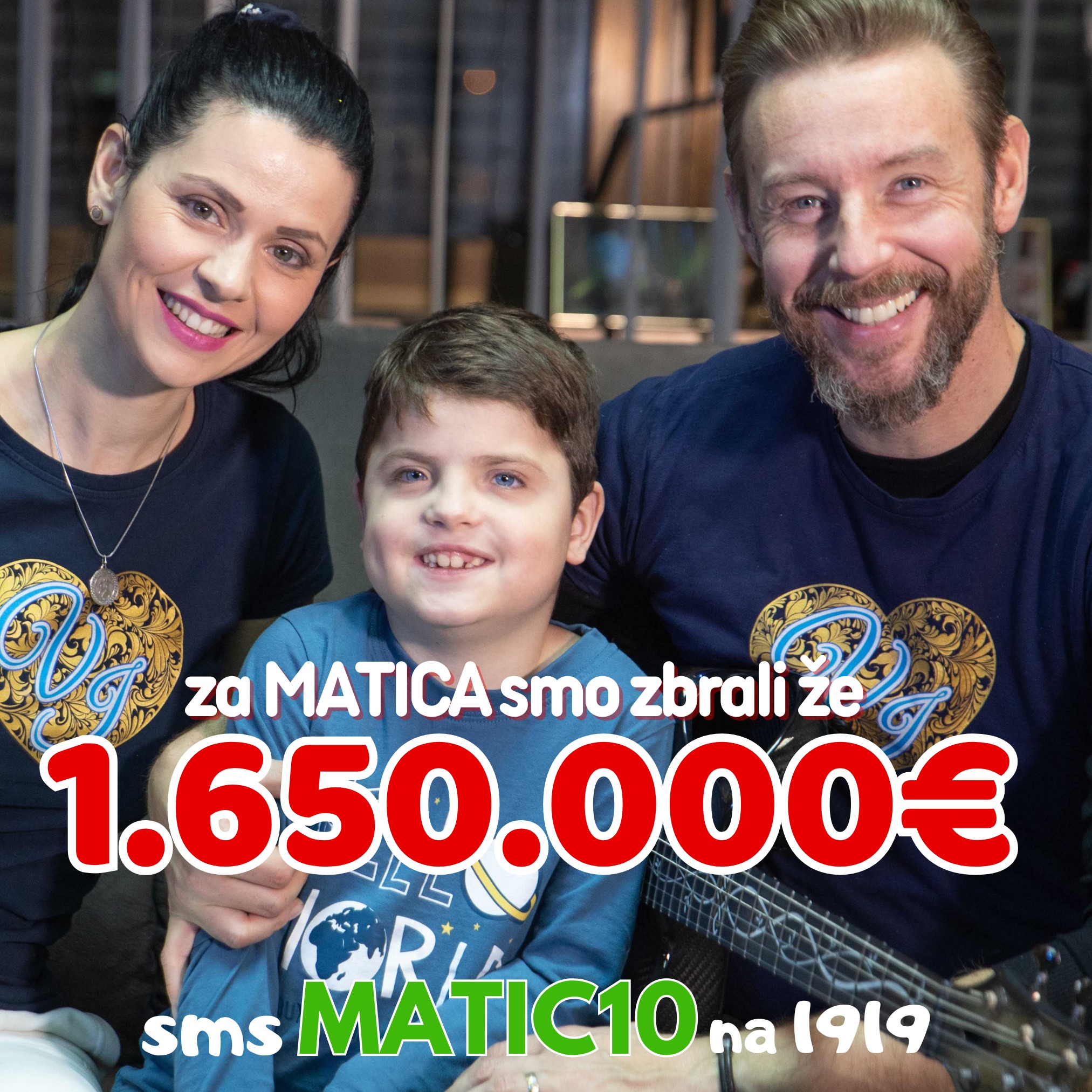 Že 1.650.000 € je Slovenija zbrala za dečka Matica, ki se bori z Duchennovo mišično distrofijo. Do končnega cilja, ki je 2,2 milijona €, ki bo dečku omogočil, da bo lahko prejel revolucionarno gensko zdravljenje Elevidys, ga loči še zadnja četrtina.