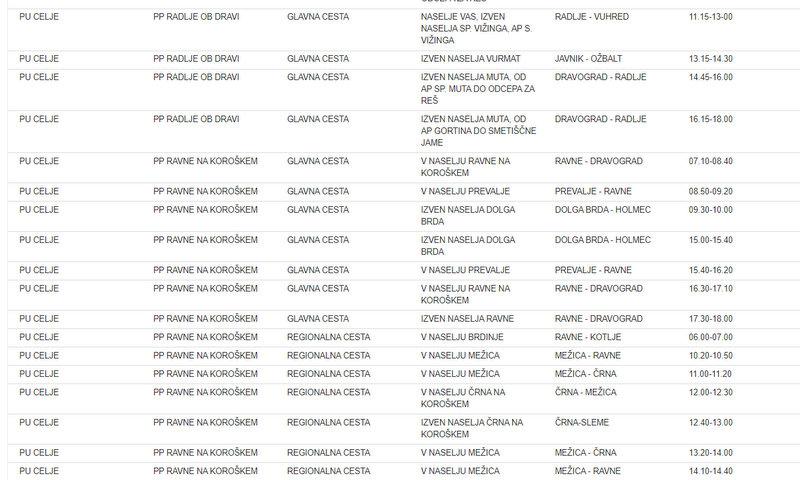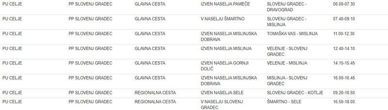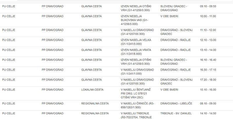 Preverite, na katerih lokacijah bomo merili hitrost: Lokacije meritev hitrosti