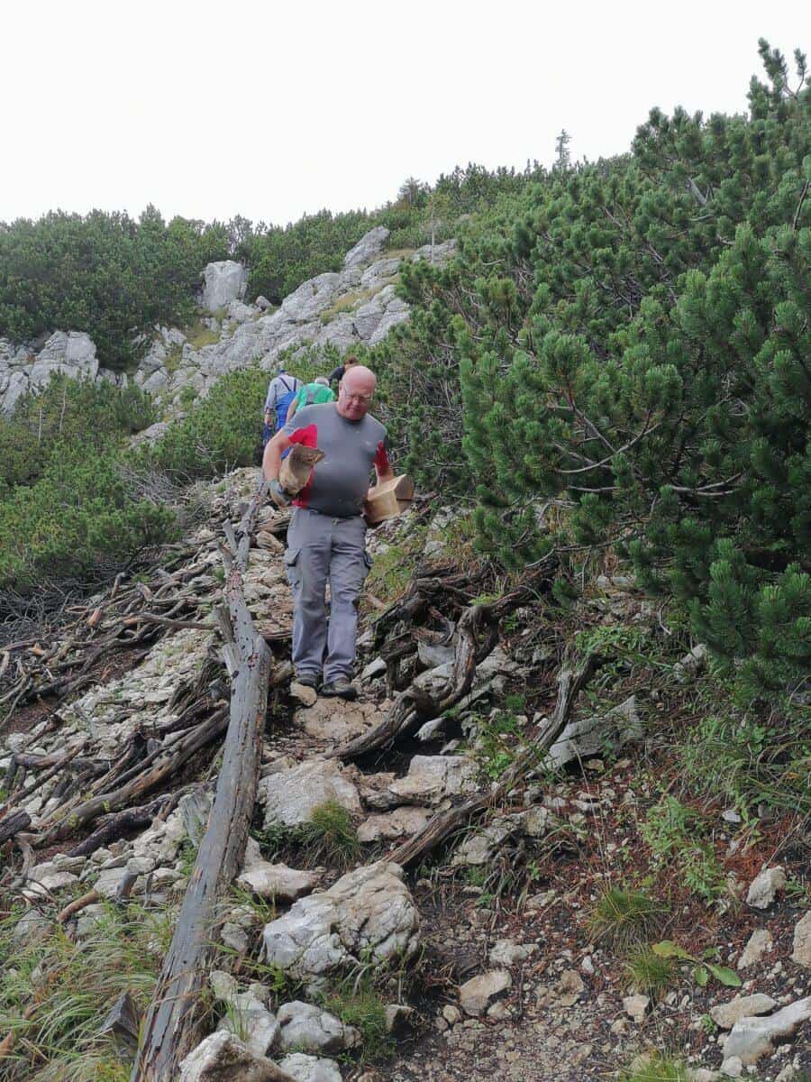 Po njegovih besedah so priprave na septembrsko delovno akcijo potekale že od letošnje zgodnje pomladi (sestankovanja, dogovori, prošnje za pomoč …). Aprila in maja je potekal popis materiala na terenu, izdelava akacijevih količkov, prevoz količkov in potrebnega lesa do Koče v Grohotu, lupljenje in priprava lesa za helikopterski prevoz, ki so ga na Durce in na planinsko pot dostavili 2. avgusta.