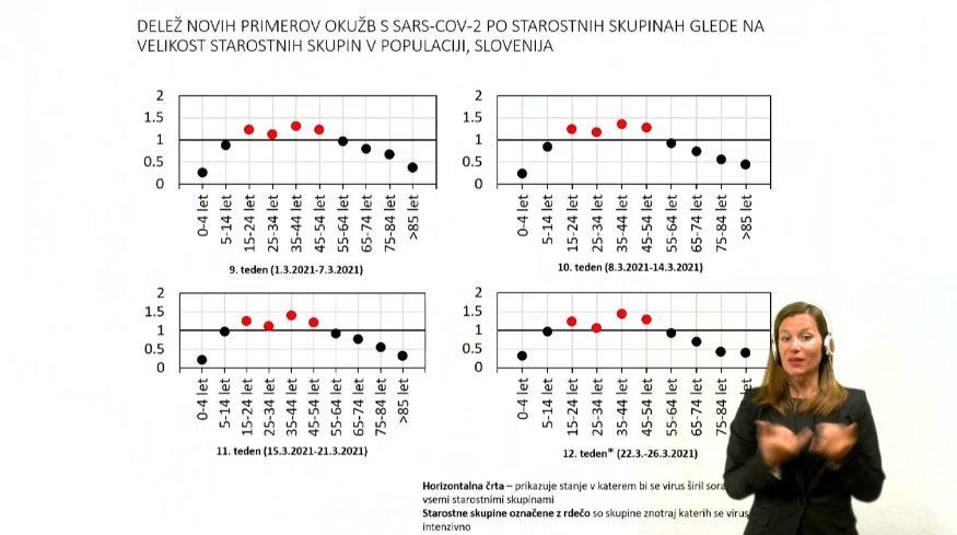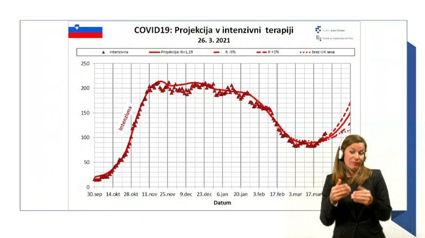 Narašča tudi število bolnikov s covidom-19 v bolnišnicah in sprejetih na intenzivne oddelke. Trenutno je najbolj izpostavljena starostna skupina pod 45 let. Če bo šlo tako naprej, bomo imeli v mesecu aprilu na intenzivni negi od 150 do 200 ljudi, "kar je naš plato".