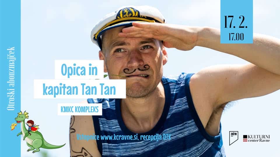 KMKC Kompleks vabi na otroško predstavo v sklopu otroškega abonzmajčka. Tokrat vas vabijo v KC Ravne na prometno zgodbico o kopensko-cestnih pravilih, predstavo Opica in Kapitan Tan Tan.