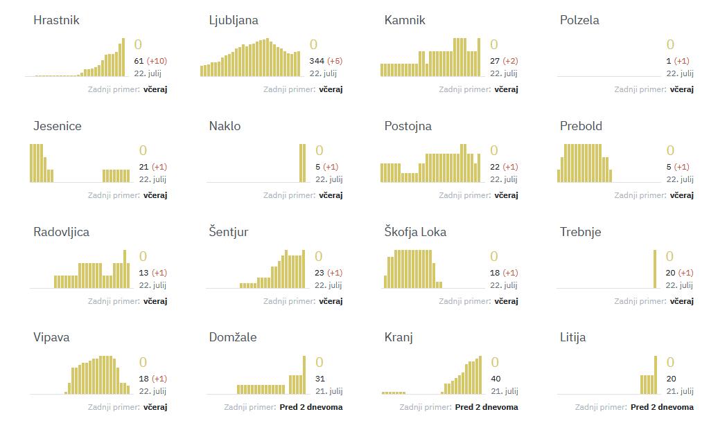 Novi primeri v slovenskih občinah (torek, 22. 7. 2020):