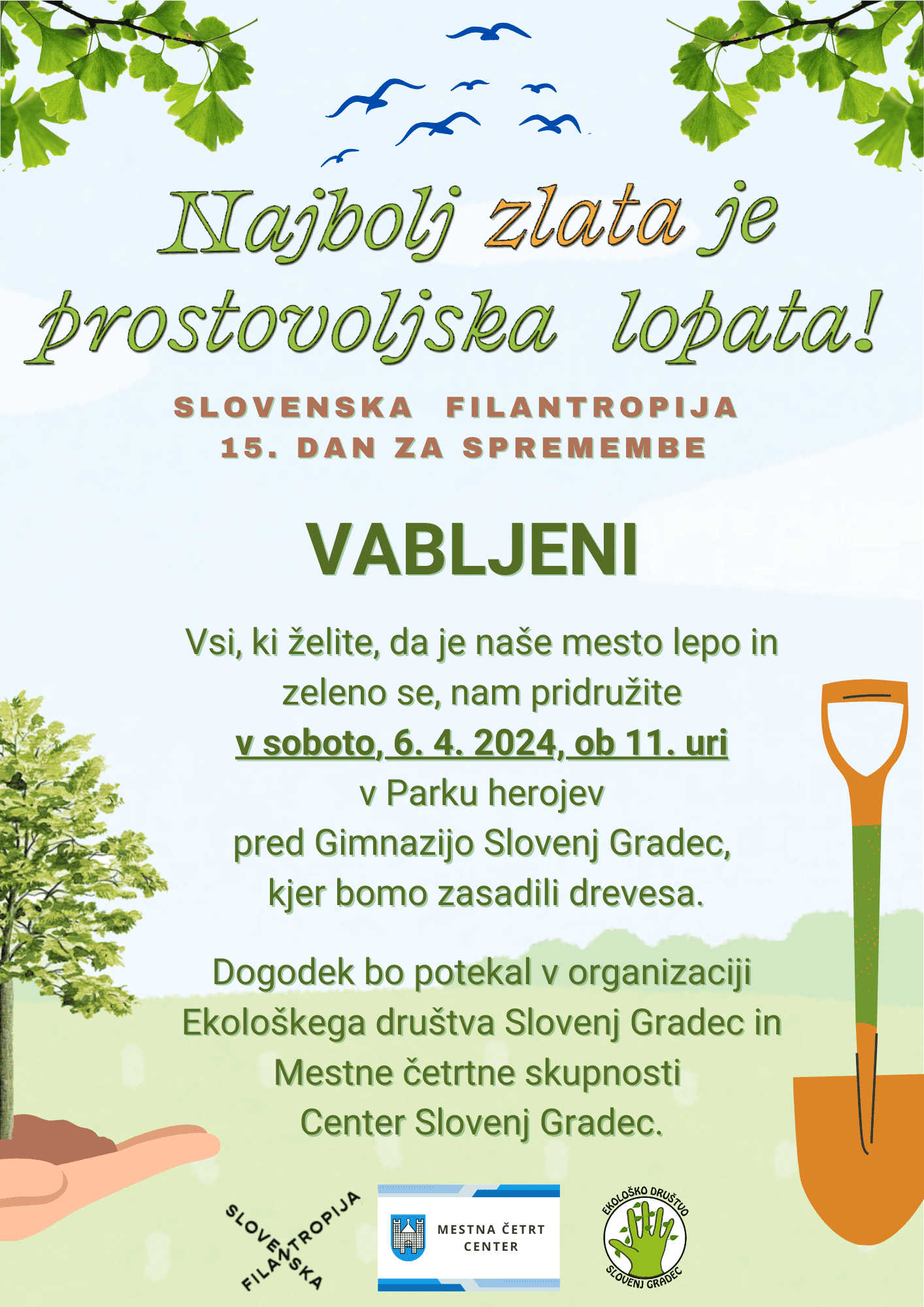 Prav tako bodo ob Dnevu za spremembe ob 11. uri posadili drevesa v Parku herojev pred Gimnazijo Slovenj Gradec, da bo mesto še bolj lepo in zeleno. Kot pravijo, ''Najbolj zlata je prostovoljska lopata,'' zato bodo drevesa zagotovo rasla še toliko bolj bujno.