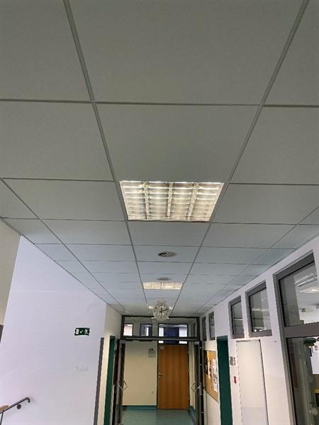 Investitor Mestna občina Slovenj Gradec, Šolska ulica 5, 2380 Slovenj Gradec je v času jesenskih šolskih počitnic v 1. nadstropju na hodniku pred knjižnico 1. OŠ Slovenj Gradec uredila požarni strop.