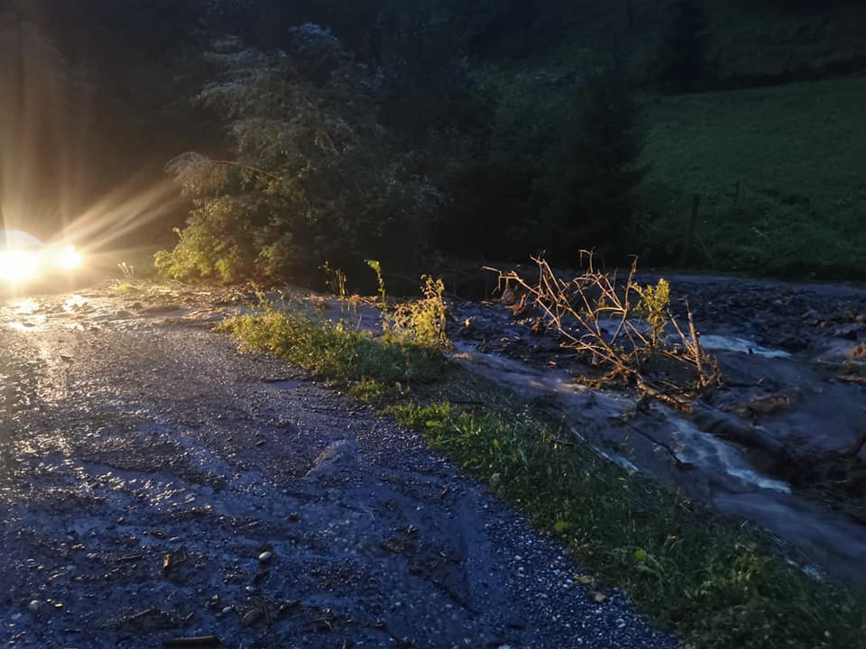 Ob 19.23 je občino Muta zajelo močno neurje z vetrom in dežjem. Gasilci PGD Muta so posredovali na več lokacijah, kjer so odstranjevali podrto drevje s cestišč, s pomočjo delovnega stroja usmerjali hudournike, ki so ogrožali ceste in objekte. V naselju Gortina so pogasili električni drog, ki se je podrl zaradi vetra, brez elektrike je ostalo 70 odjemalcev. Dežurni delavci Elektra Celje so nastalo škodo odpravili.