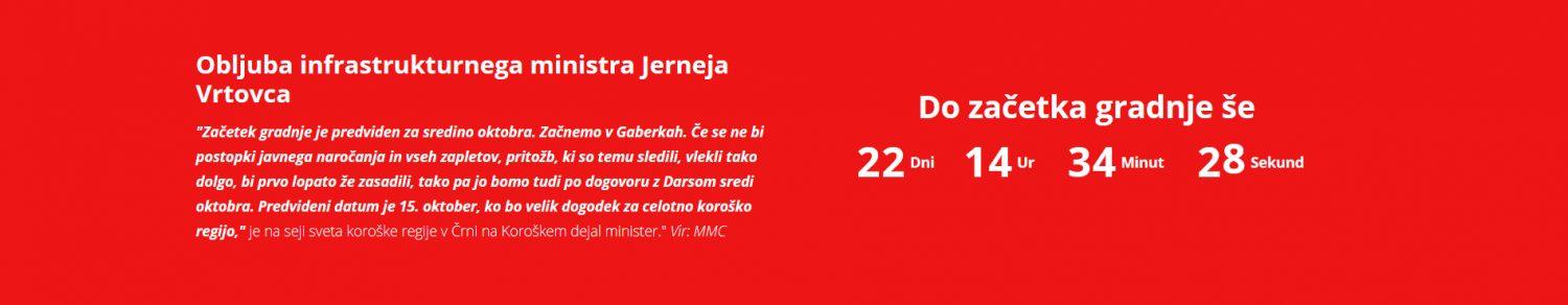 Mladinska iniciativa za 3. razvojno os je pretekli petek sprožila odštevalnik časa do pričetka gradnje 3. razvojne osi v Gaberkah. Ta sledi časovni obljubi ministra Vrtovca ob zadnjem obisku na seji Sveta koroške regije.