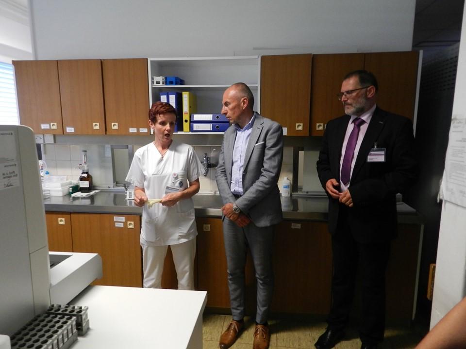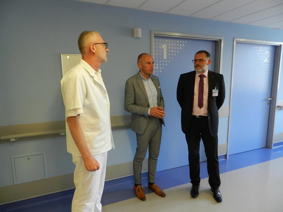 Minister si je v nadaljevanju obiska ogledal moderno opremljen Oddelek za urologijo v novem delu bolnišnice, Oddelek za splošno in abdominalno kirurgijo, Oddelek za interno medicino ter Oddelek za laboratorijsko diagnostiko. Predstojniki so ministru povedali, da se soočajo s pomanjkanjem kadra in neustreznimi prostorskimi razmerami v starem kirurškem bloku.