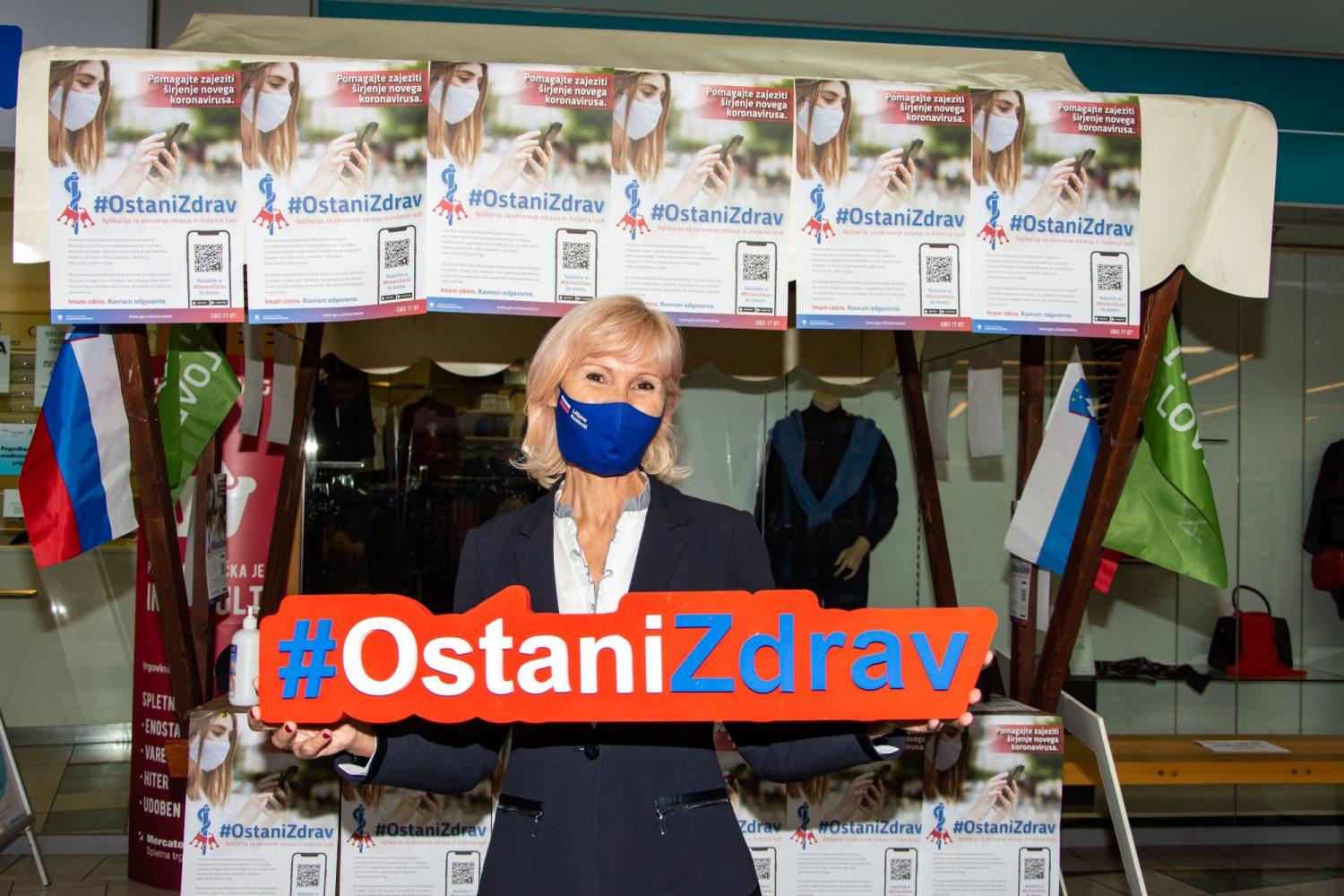 Ministrica si je ogledala tudi stojnico Ostani zdrav v Slovenj Gradcu. "Aplikacija Ostani zdrav je izjemnega pomena, saj omogoča preventivno ravnanje in s tem zajezitev širjenja bolezni. Jaz aplikacijo uporabljam, pozivam vas, da to stori vsak posameznik in tako doprinese k obvladovanju bolezni," je dejala ministrica.