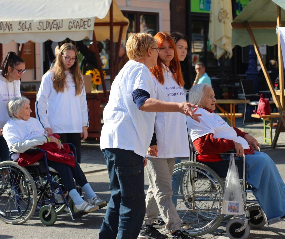 Društvo paraplegikov Koroške je prikazalo gibanje gibalno oviranih, Medobčinsko društvo slepih in slabovidnih Maribor pa gibanje slepih in slabovidnih, prikaz "kretanja" - sporazumevanja gluhih in naglušnih so pripravili člani Društva gluhih in naglušnih Koroške. Potekala je tudi delavnica simulacije s katero smo lahko vstopili v "čevlje" starostnika, kar so nam predstavili člani Centra za krepitev zdravja Koroške. Alpinistični klub Slovenj Gradec je predstavil plezalni stolp - paraplezalstvo, v preddverju Koroške galerije likovnih umetnosti in Koroškega pokrajinskega muzeja pa smo si lahko ogledali predstavitev video produkcije. Zavod beli angel je prikazal vožnjo z "angelom" na motorju, na košarkarski tekmi pa so se pomerili člani Društva paraplegikov Koroške in MOSG.