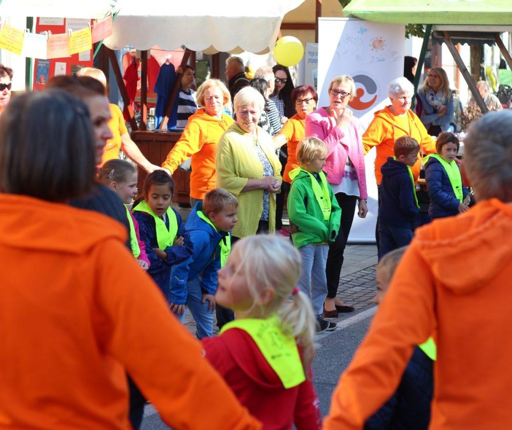 Na prireditvenem odru je v organizaciji Društva varno aktivnih poti potekal "Parkirni dan", Dom starostnikov in VVZ SG so nam predstavili Kogojev pohod ("Sprehod za spomin" ob svetovnem dnevu Alzheimerjeve bolezni). Za otroke in vse otroke po duši je Gledališče KUC izvedlo otroško predstavo "Pika in Cene v pravljici". Vzgojno varstveni zavod je predstavil tri pesmice in deklamacijo, dve skladbi pa so nam zapeli člani pevskega zbora Veseljaki iz CUDV Črna. Zdravstveni dom je predstavil vadbo za invalide na vozičkih, učenci od 1. do 5. razreda ter kasneje učenci od 6. do 9. razreda Prve osnovne šole pa so izvedli plesno točko (flash mob), plesno in pevsko točko pa so pripravili tudi učenci iz Druge osnovne šole Slovenj Gradec. Nastopile so ljudske pevke Lastovke, dijaki Srednje zdravstvene šole Slovenj Gradec pa so recitirali pesem Nekaj ti moram povedati, avtorja Andreja Rozmana Roze. Potekala je tudi predstavitev projekta in zgodba za starejše "Starejši za starejše za višjo kakovost življenja doma".