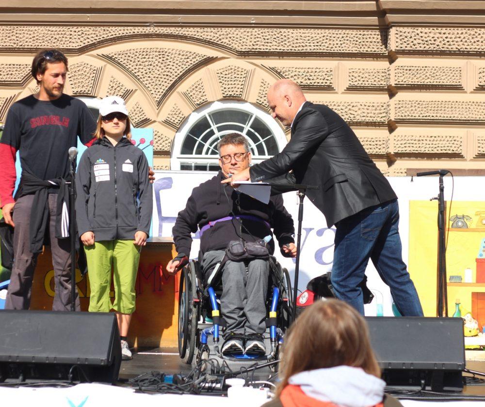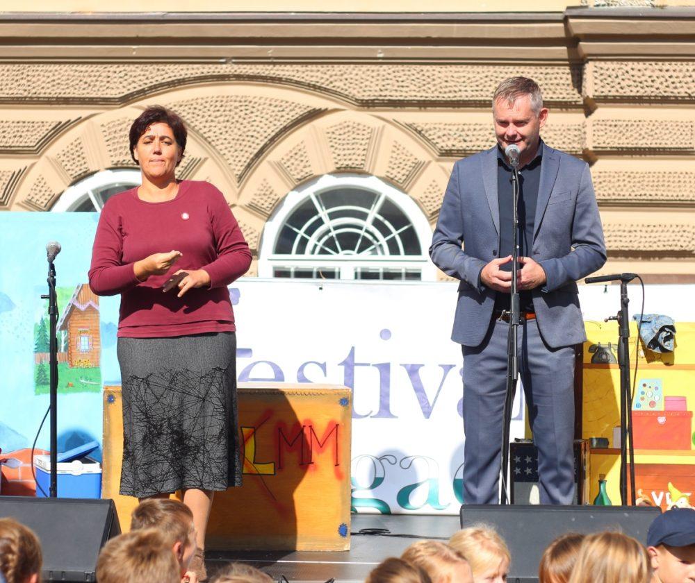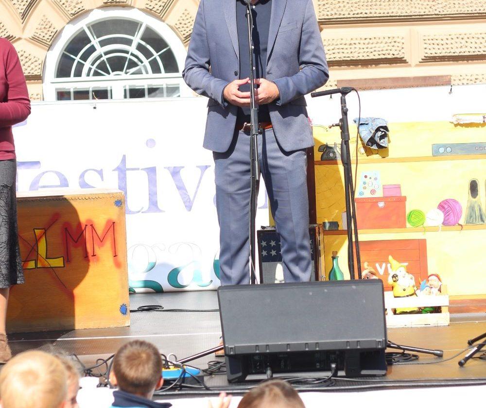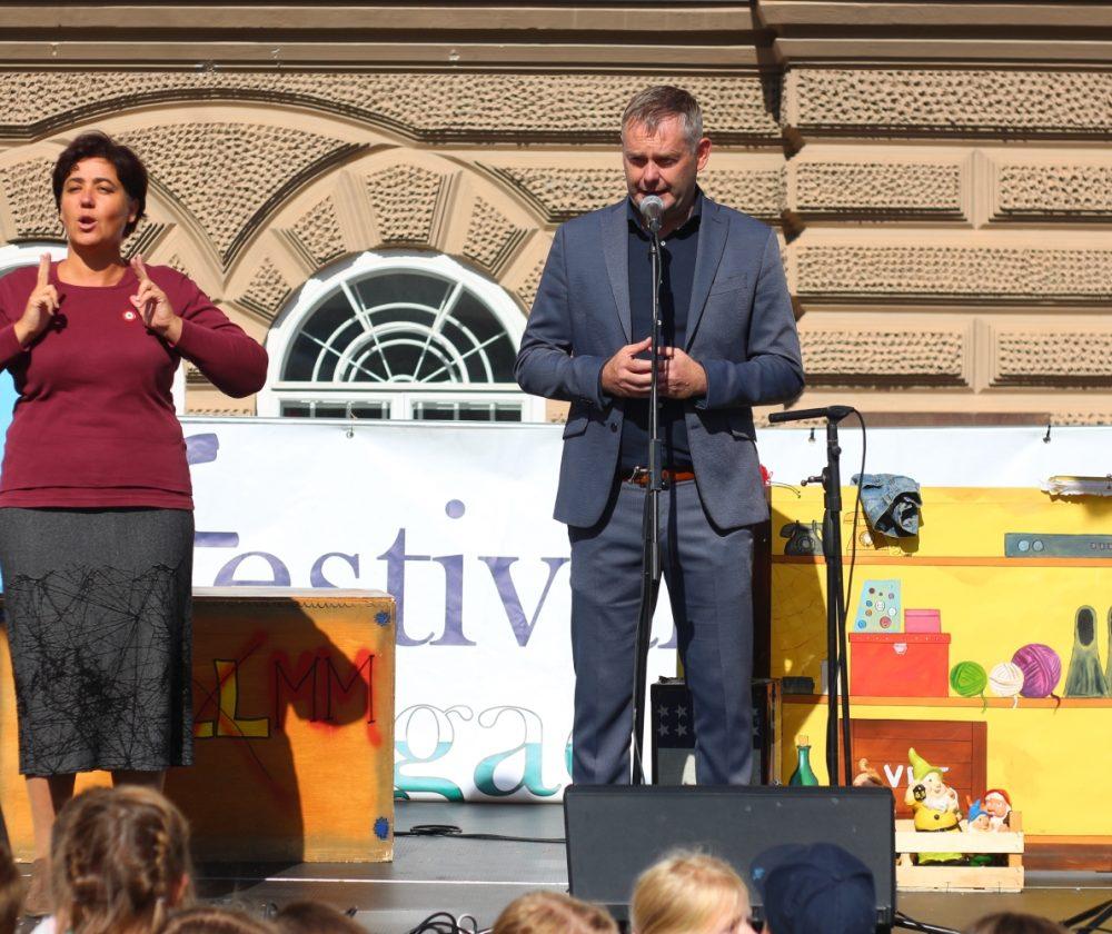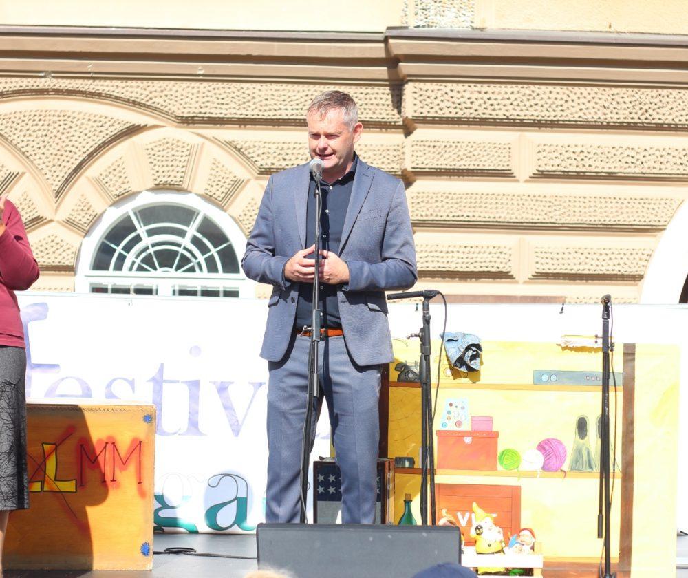 Vse goste sta na odru pozdravila župan MOSG g. Tilen Klugler ter organizator Festivala drugačnosti iz Društva paraplegikov Koroške g. Stojan Rozman.