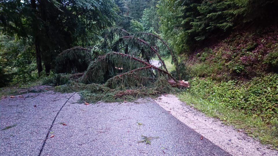 Drevesa je podiralo tudi v Občini Muta, kjer so posredovali PGD Muta, zaradi odkrite strehe objekta so posredovali tudi gasilci PGD Mislinja.
