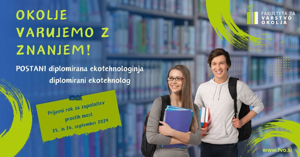Prijavni rok za zapolnitev prostih mest za študijski program Varstvo okolja in ekotehnologije 1. stopnje (dodiplomski) je: 25. – 26. september 2024, do 10. ure.