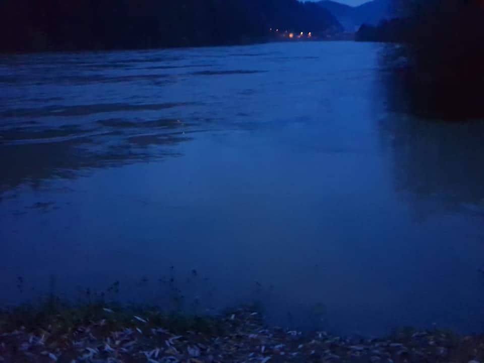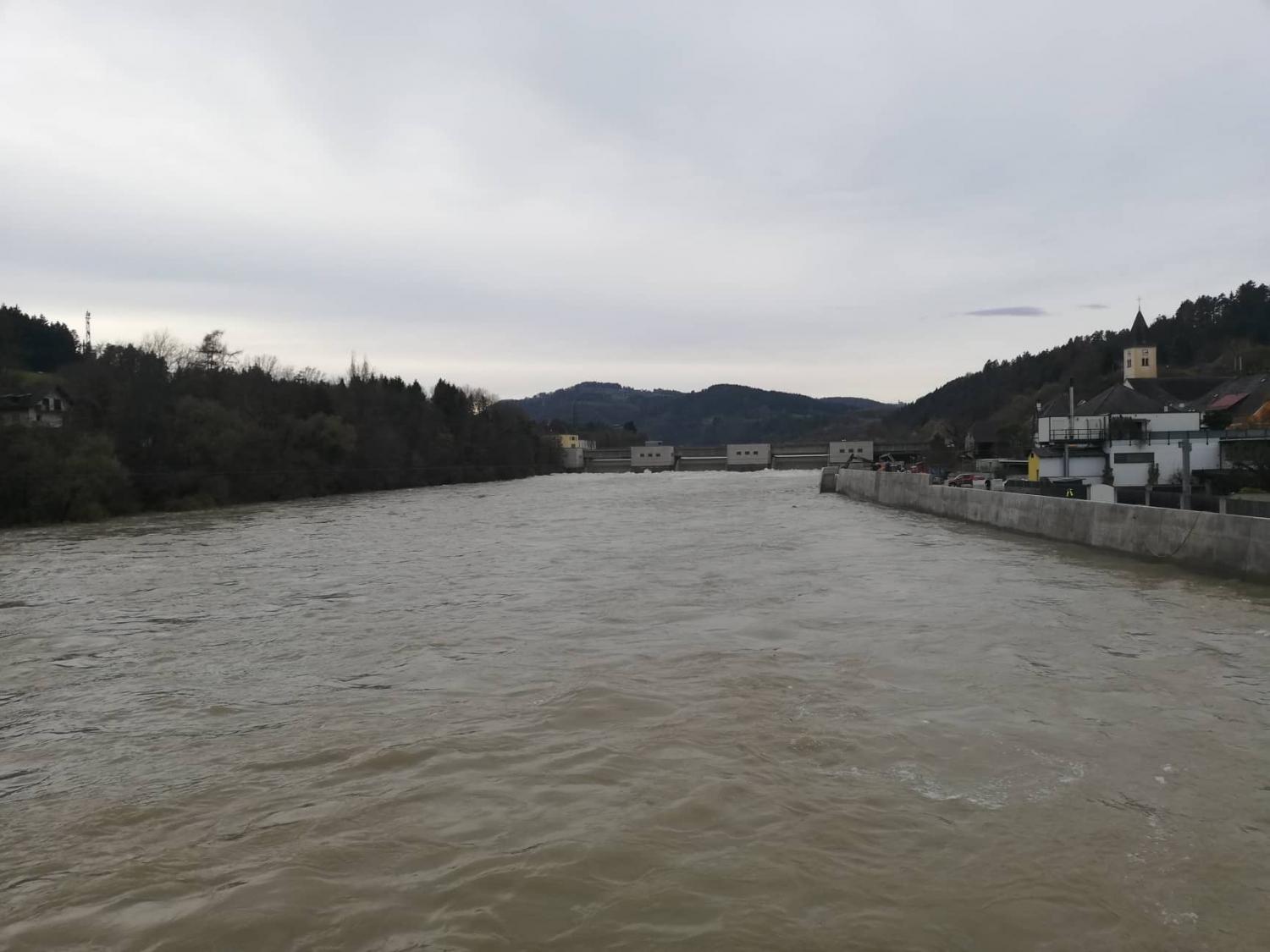 Po zadnjih podatkih, pridobljenih na spletni strani Agencije RS za okolje pa reka Drava že poplavlja na izpostavljenih območjih vzdolž celotnega toka. Na meji z Avstrijo ima ustaljen pretok okoli 1150 m3/s, v stari strugi dolvodno od pregrade Markovec pa okoli 850 m3/s. V noči na nedeljo in v nedeljo čez dan bo dotok Drave iz Avstrije še ustaljen, v noči na ponedeljek pa se lahko poveča na 1400 m3/s. V tem času bodo prav tako narasli pritoki Drave v Sloveniji, so ob 19.00 zapisali na omenjeni spletni strani.
