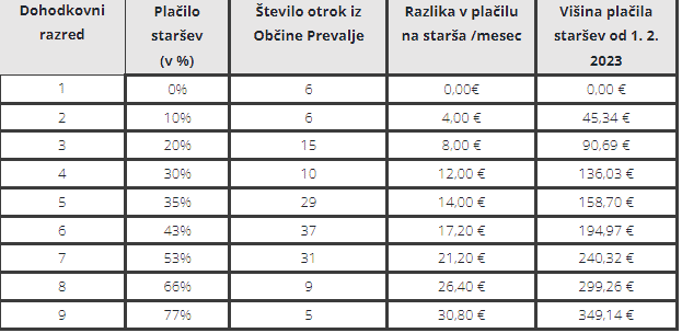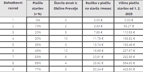 Cena programov predšolske vzgoje v OŠ Prevalje, Enoti Vrtec Prevalje se s 1.2.2023 spreminja. Na spremembo cene so vplivali sistemski dvigi plač v javnem sektorju, napredovanja delavcev, izplačila redne delovne uspešnosti zaposlenim in druge pravice iz delovnega razmerja.