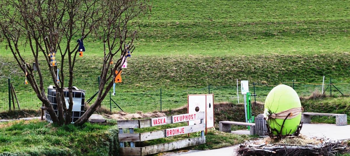 V novo ustanovljeni vaški skupnost (VŠ) Brdinje se ponašajo z novo zanimivo kreacijo, velikim pobarvanim velikonočnim jajcem in zanimivim roza zajcem, ki se imenuje zajčica Rozi.