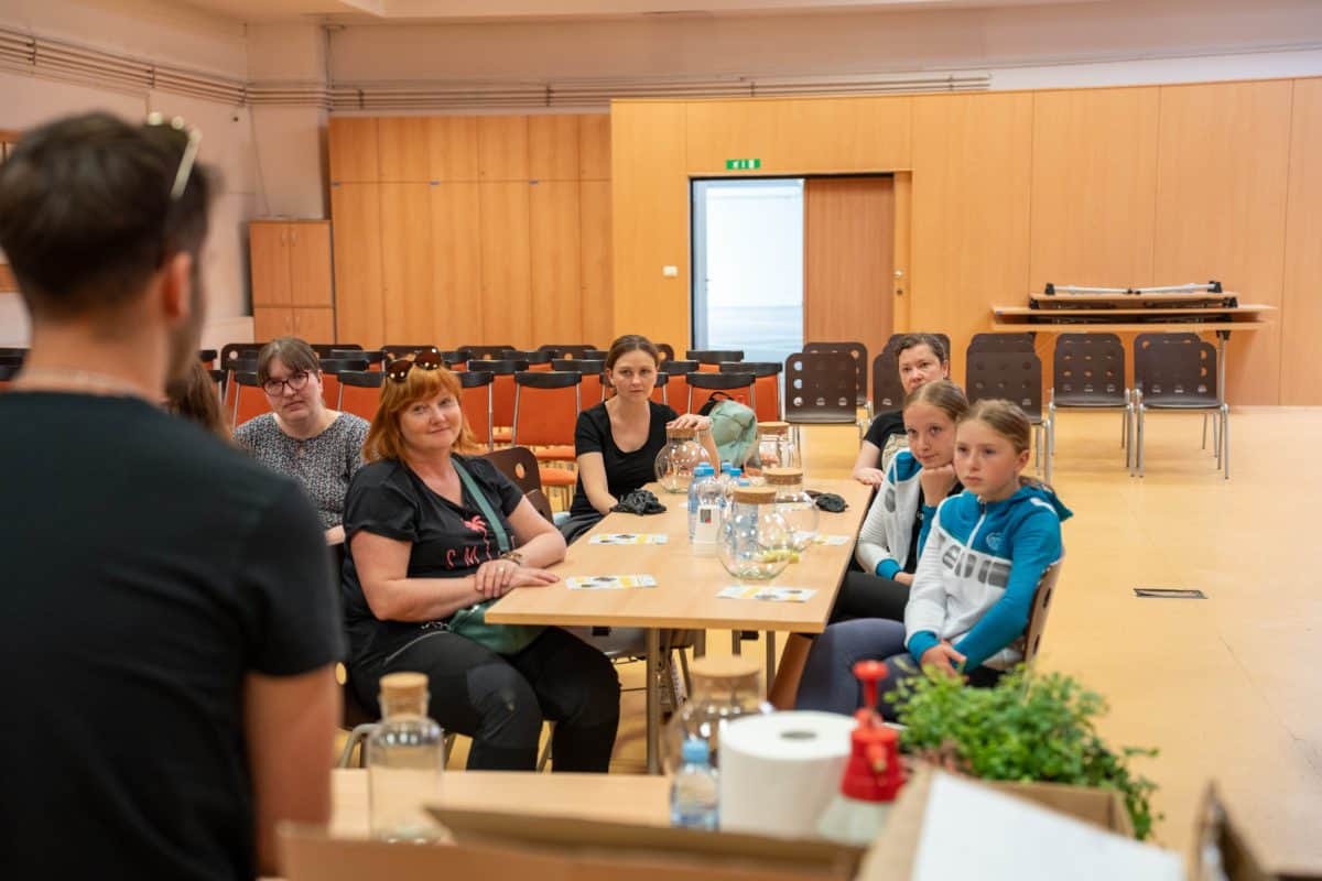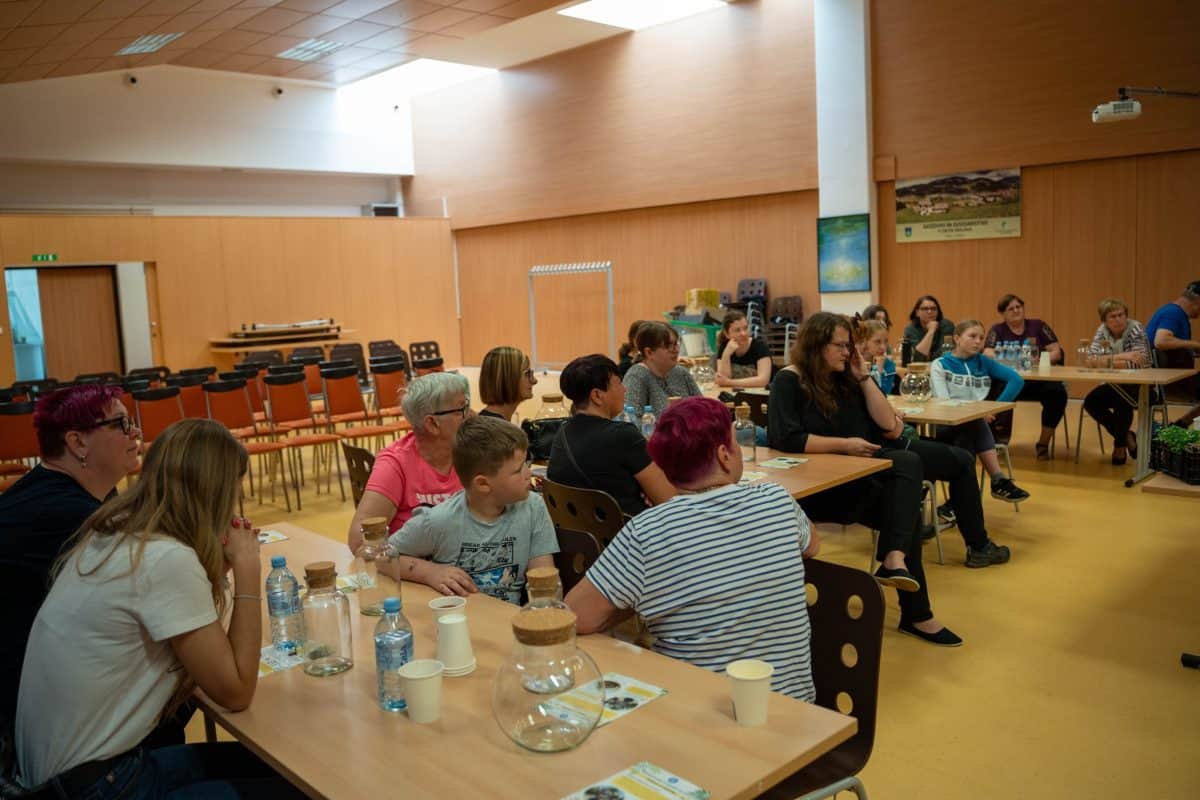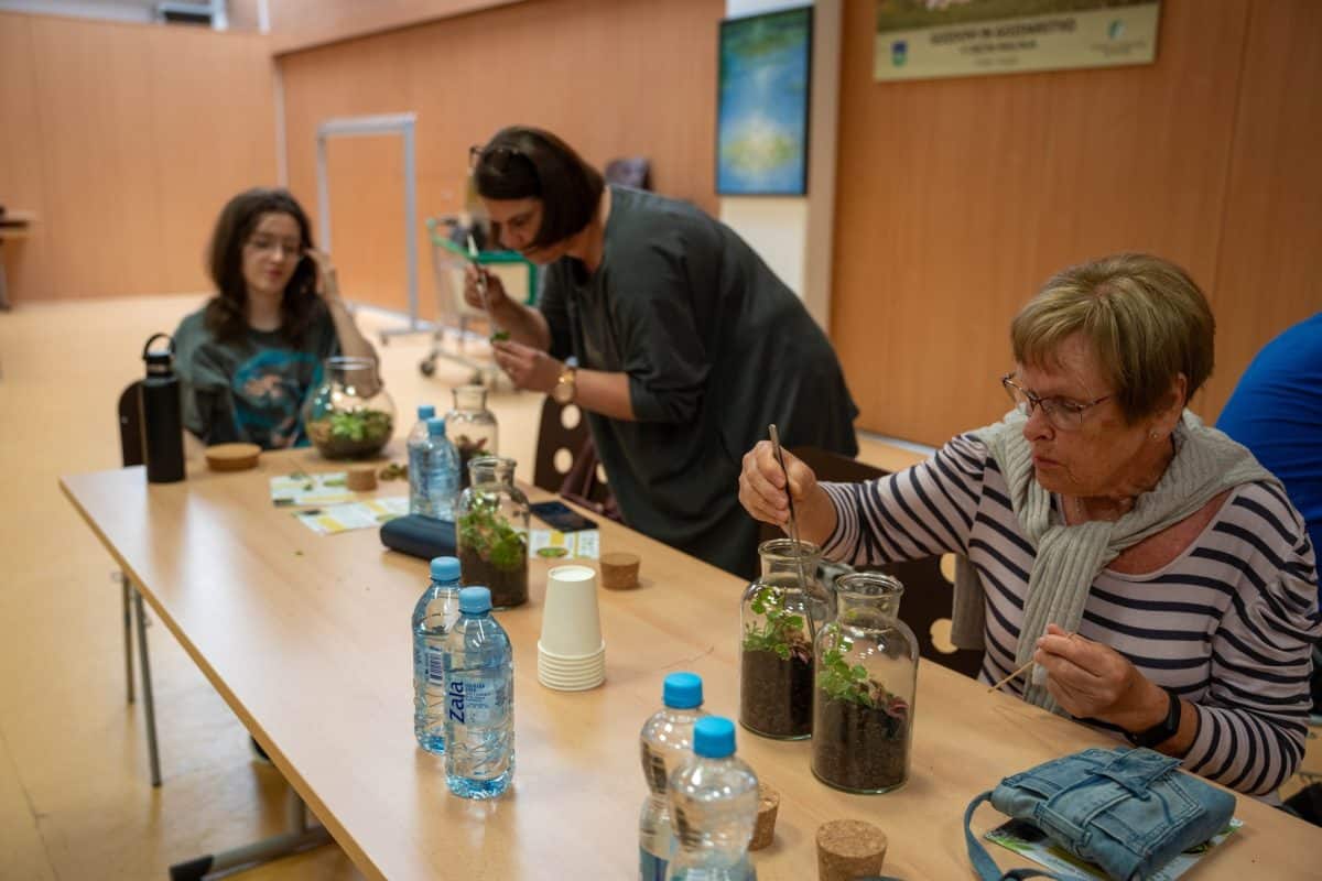 Ob zaključku delavnice so zbrani še poklepetali z Miho, ki je sodelujočim povedal marsikateri uporabni nasvet za skrb in nego novih tropikarijev.