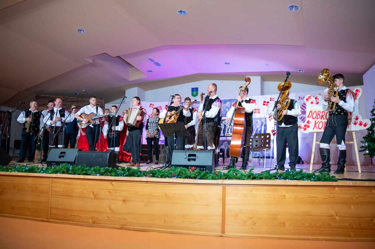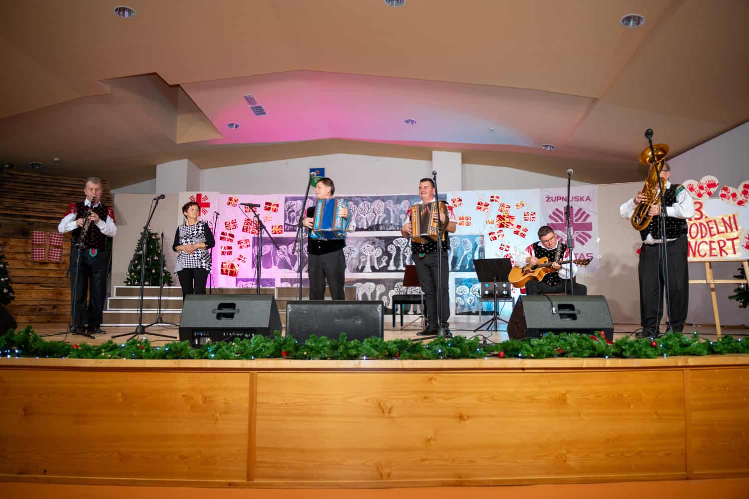 Koncert je otvorila Babnikova godba, ki je s svojo energično glasbo poskrbela za slovesen začetek. Po glasbeni uverturi je občinstvo pozdravil župnik g. Tine Tajnik, ki je poudaril pomen pomoči in sočutja. Nastop najmlajših, otrok iz vrtca Mislinja, je navdušil z iskrenostjo in simpatičnostjo. Sledila je čudovita izvedba solistične točke Ane Ane Dušice, nato pa so na oder stopili člani šolskega pevskega zbora Osnovne šole Mislinja, ki so s svojim petjem poželi glasen aplavz.