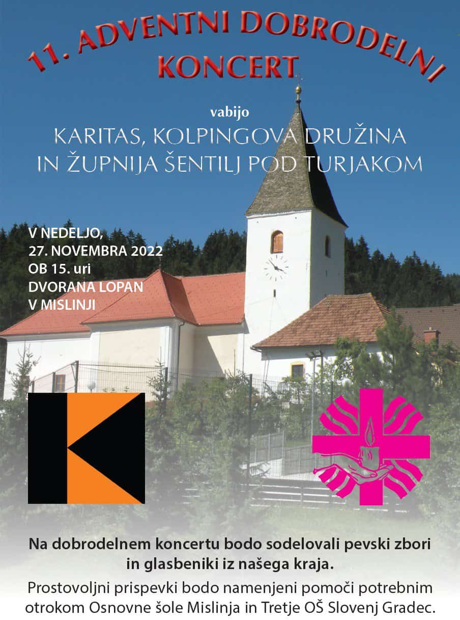 Tako bo tudi v Župniji Šentilj pod Turjakom, ki vas skupaj s Karitas in Kolpingovo družino vabijo na 11. Adventni dobrodelni koncert, ki bo 27. 11. 2022 ob 15. uri v dvorani Lopan v Mislinji.