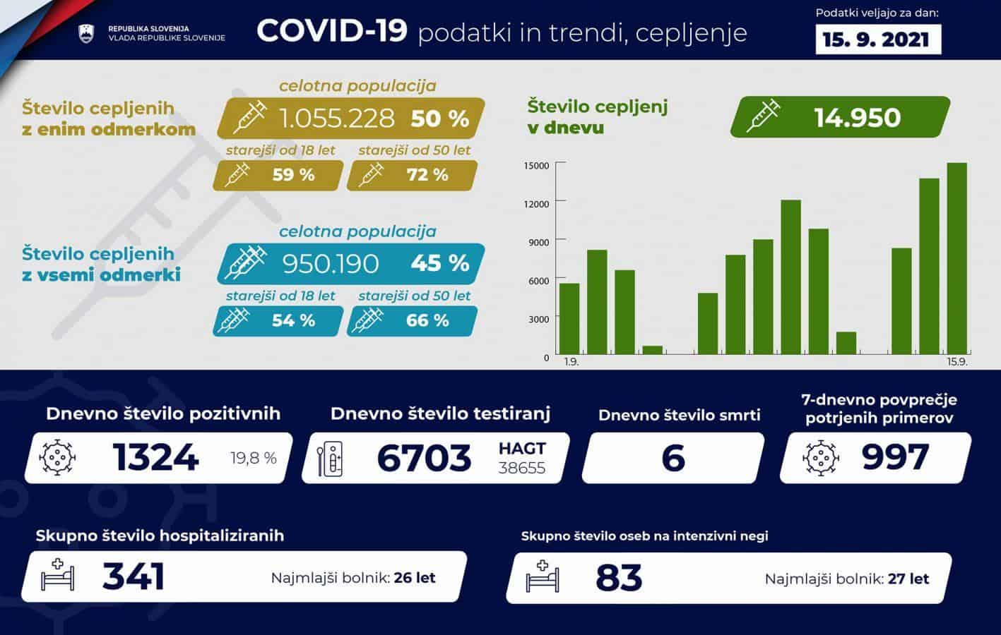 Z enim odmerkom cepiva proti covidu-19 je v državi cepljenih 1.055.228 oseb oziroma 50 odstotkov, z vsemi odmerki pa 950.190 oseb oziroma 45 odstotkov. V sredo, ko so se začeli pogoji PCT veljati tako rekoč povsod, se je po podatkih vlade cepilo 14.950 ljudi.