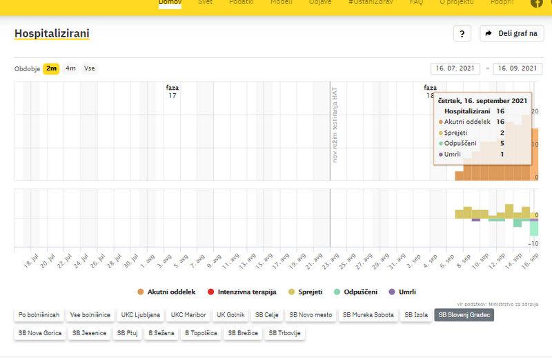 V SB Slovenj Gradec zdravijo 16 covidnih bolnikov.
