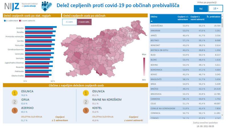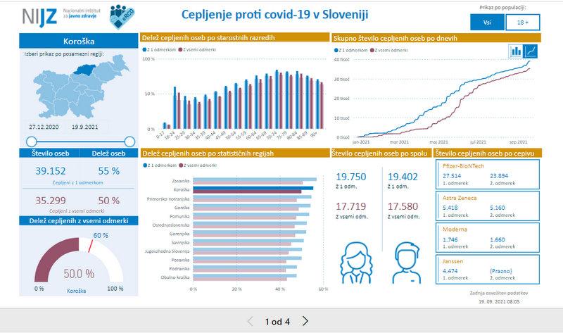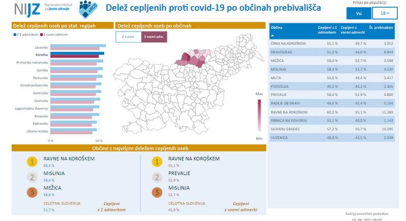 Z enim odmerkom cepiva proti covidu-19 je na Koroškem cepljenih 39.152 oseb, z obema odmerkoma pa 35.299 oseb. Med slovenskimi občinami so Ravne na drugem mestu po številu cepljenih z dvema odmerkoma. Med koroškimi občinami pa na prvem mestu, tako z enim kot dvema odmerkoma. Med prve tri se je prebila Mislinja. Dolgo časa so namreč bile med prvimi tremi v regiji Ravne, Mežica in Prevalje.