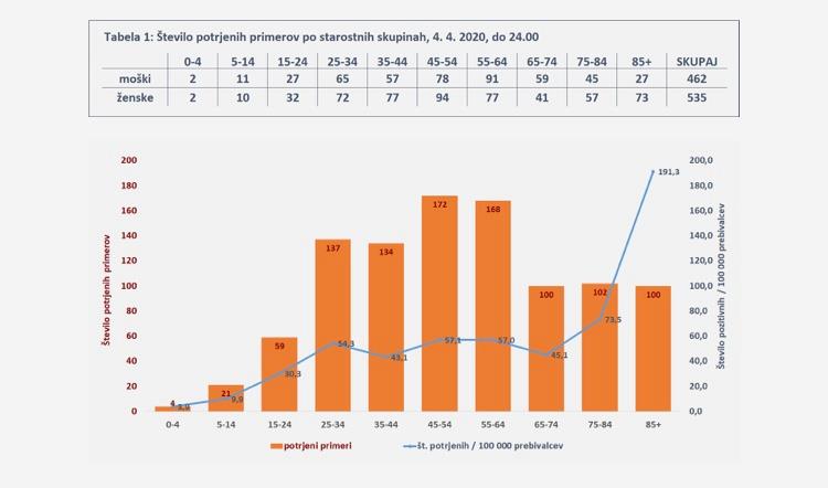 Do 4. 4. 2020 do 24. ure je bilo opravljenih 27.764 testiranj, od tega je bilo 1009 pozitivnih testov.