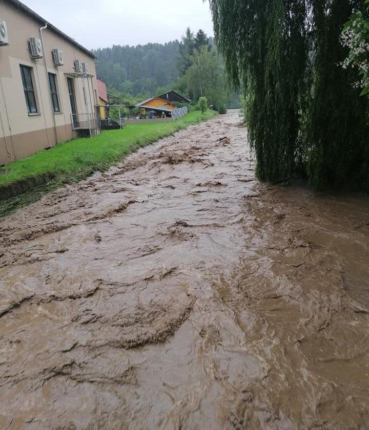 Težave so imeli tudi v naselju Zgornje Gruškovje v občina Podlehnik, kjer je meteorna voda z vejami in umazanijo zapolnila most ter se začela razlivati. Gasilci so odstranili dva kubična metra vej in umazanije in počistili prepust ter s tem omogočili pretok vode.