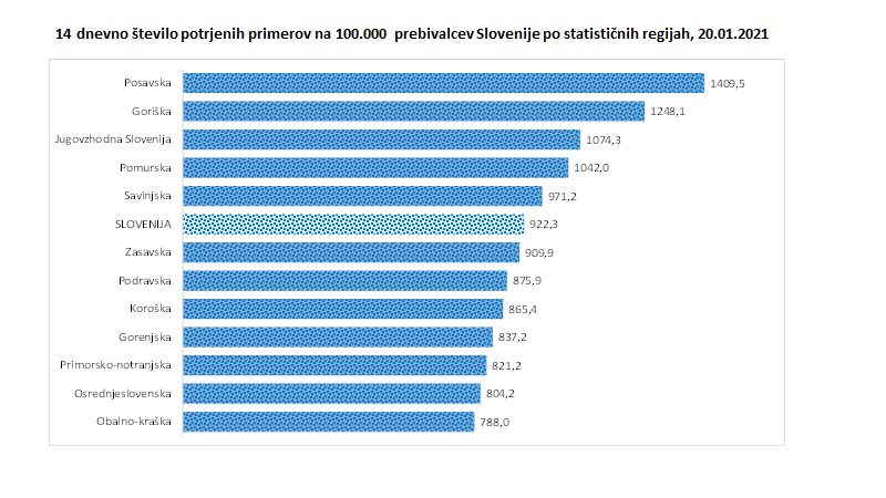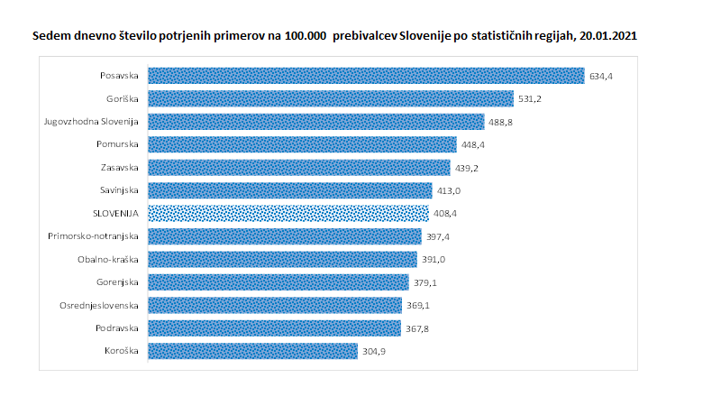 V zadnjih 7 dneh je bilo največ okužb v Osrednjeslovenski regiji, najmanj pa v Primorsko-notranjski.