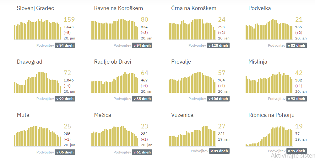 Včeraj so v Sloveniji zabeležili 1.445 novih okužb. Bratuša je povedala, da največ v naslednjih občinah: Ajdovščina 21, Brežice 32, Celje 33, Domžale 26, Koper 46, Krško 29, Murska Sobota 25, Nova Gorica 33, Novo mesto 58, Ljubljana 176, Maribor 75.