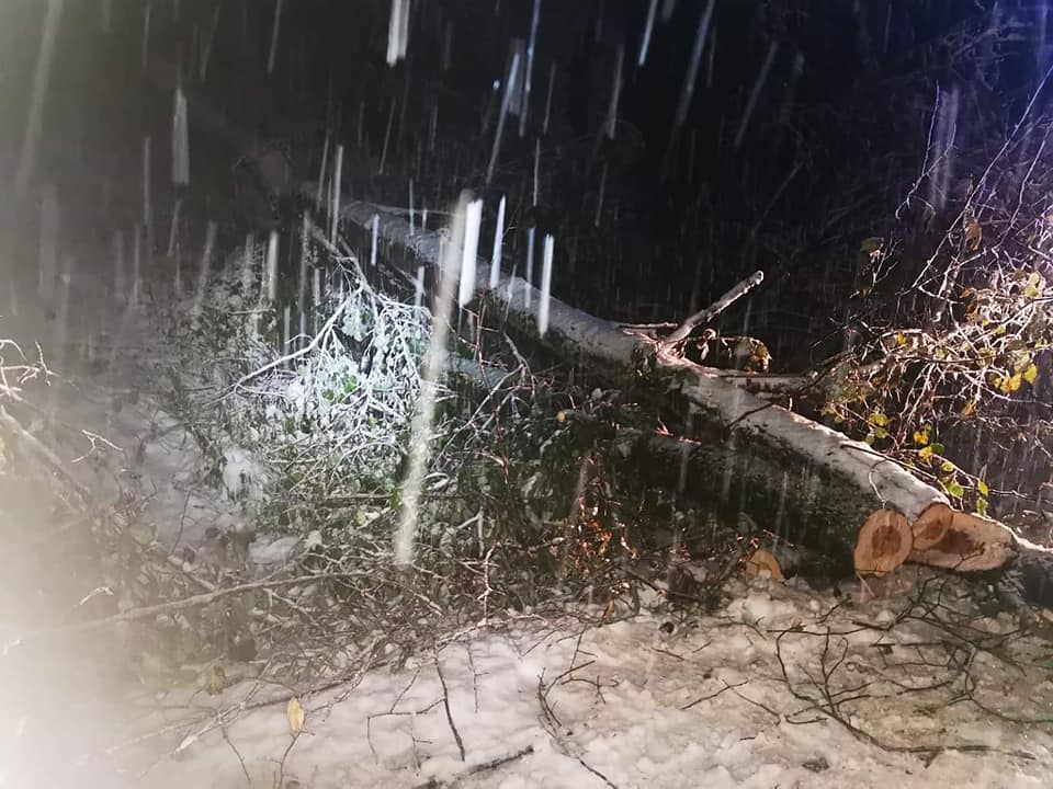 Zaradi teže snega se je na regionalno cesto v Ribnici na Pohorju podrlo drevo in zaprlo polovico voznega pasu. Odstranili so ga delavci cestnega podjetja VOC Celje.